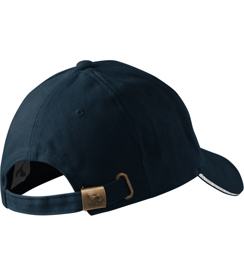 wyszywany, lekko zakrzywiony daszek z kontrastowym paskiem