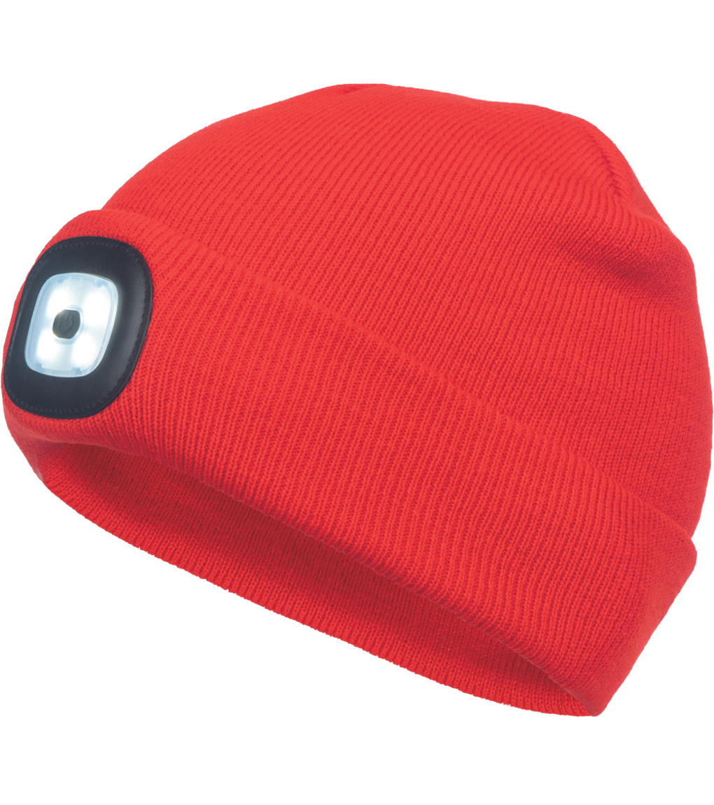 Dzianinowa czapka ze zintegrowaną lampką LED. 3 funkcje oświetlenia. Jasność 150 lm. Lampę LED można wyjąć i naładować przez złącze USB.