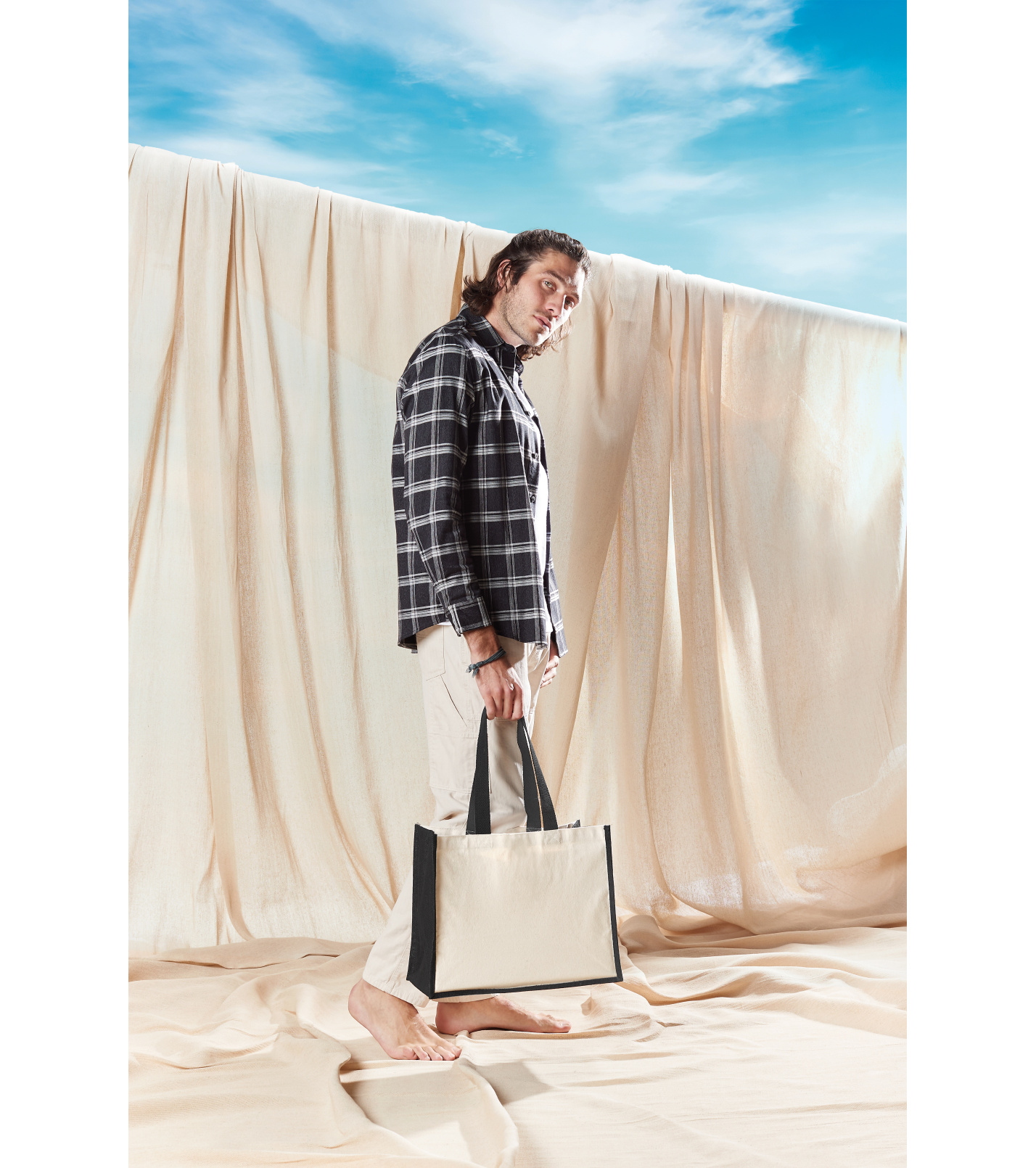 Skład: uchwyty i boki: 100% juta, reszta: 100% bawełna