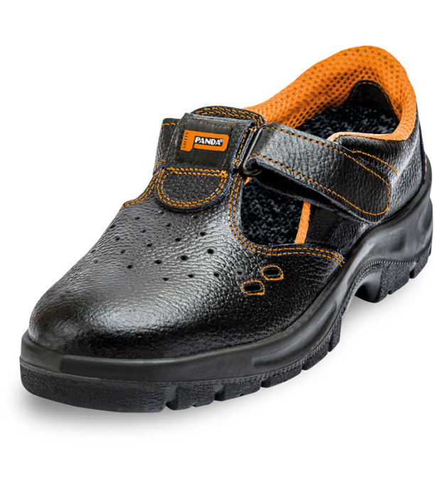 Opis: Sandały ochronne z metalowym podnoskiem, antystatyczną i antypoślizgową podeszwą PU/ PU odporną na olej, tłumienie w okolicach pięty, wykonane z oddychającej skóry.