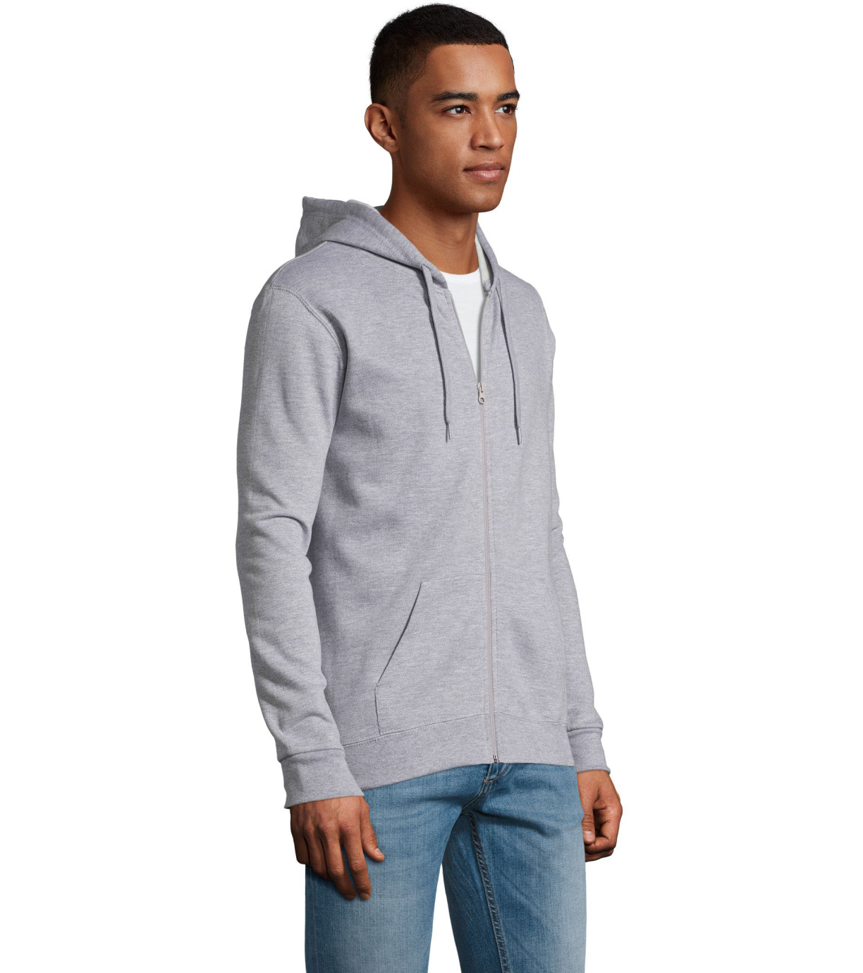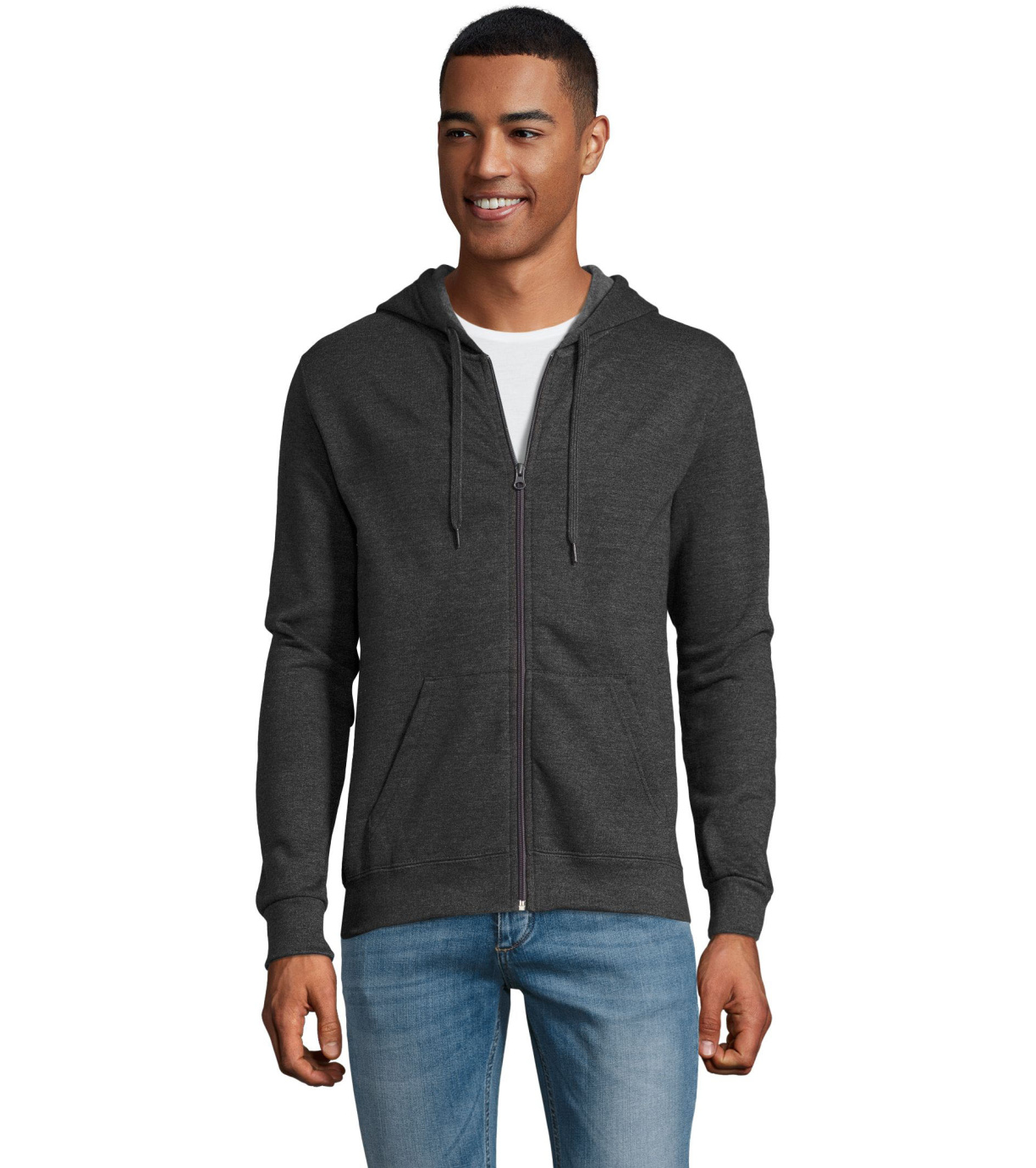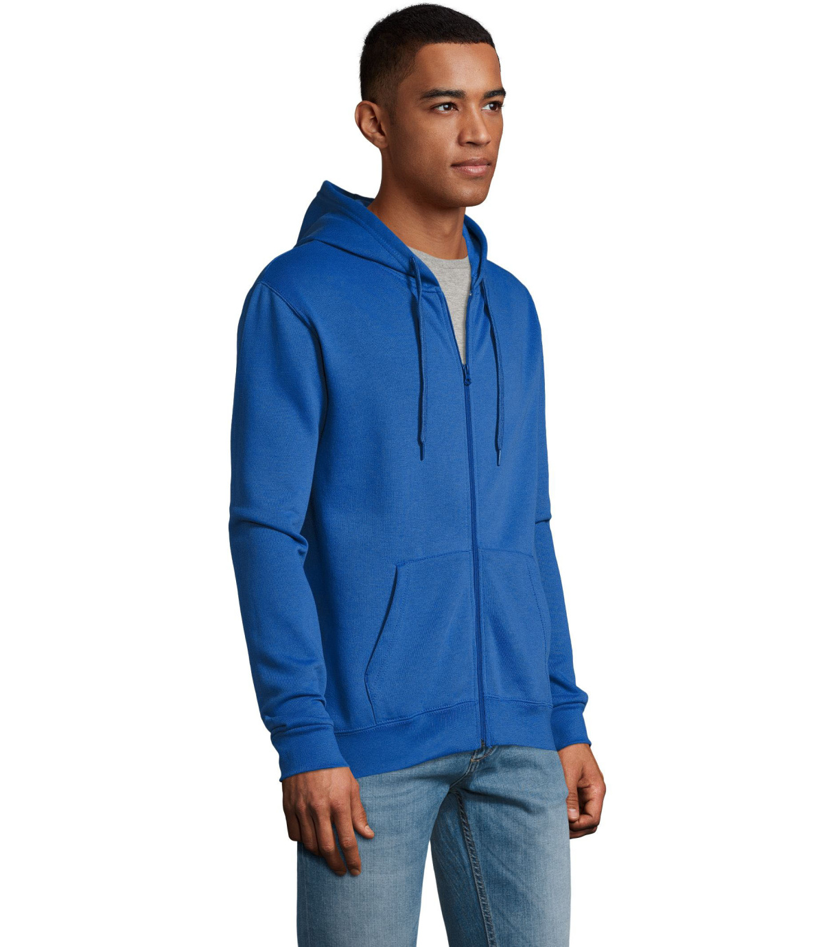 Rozpinana bluza męska. Kaptur ze ściągaczem, prosty krój, kieszeń kangur, elastyczne mankiety.