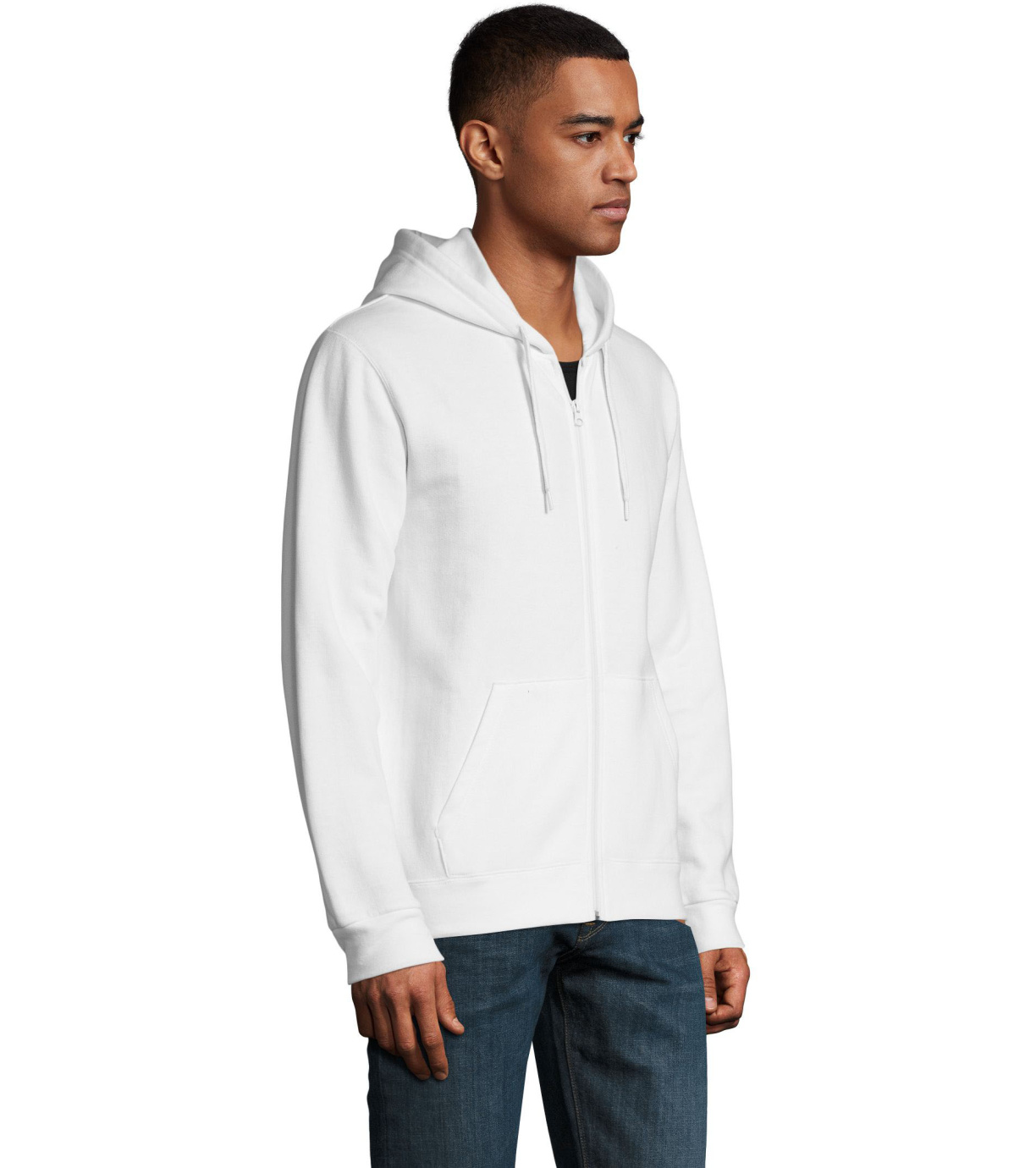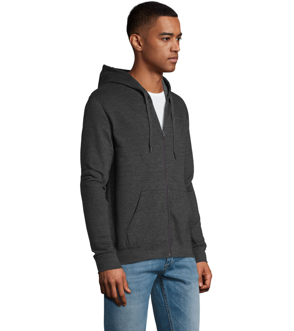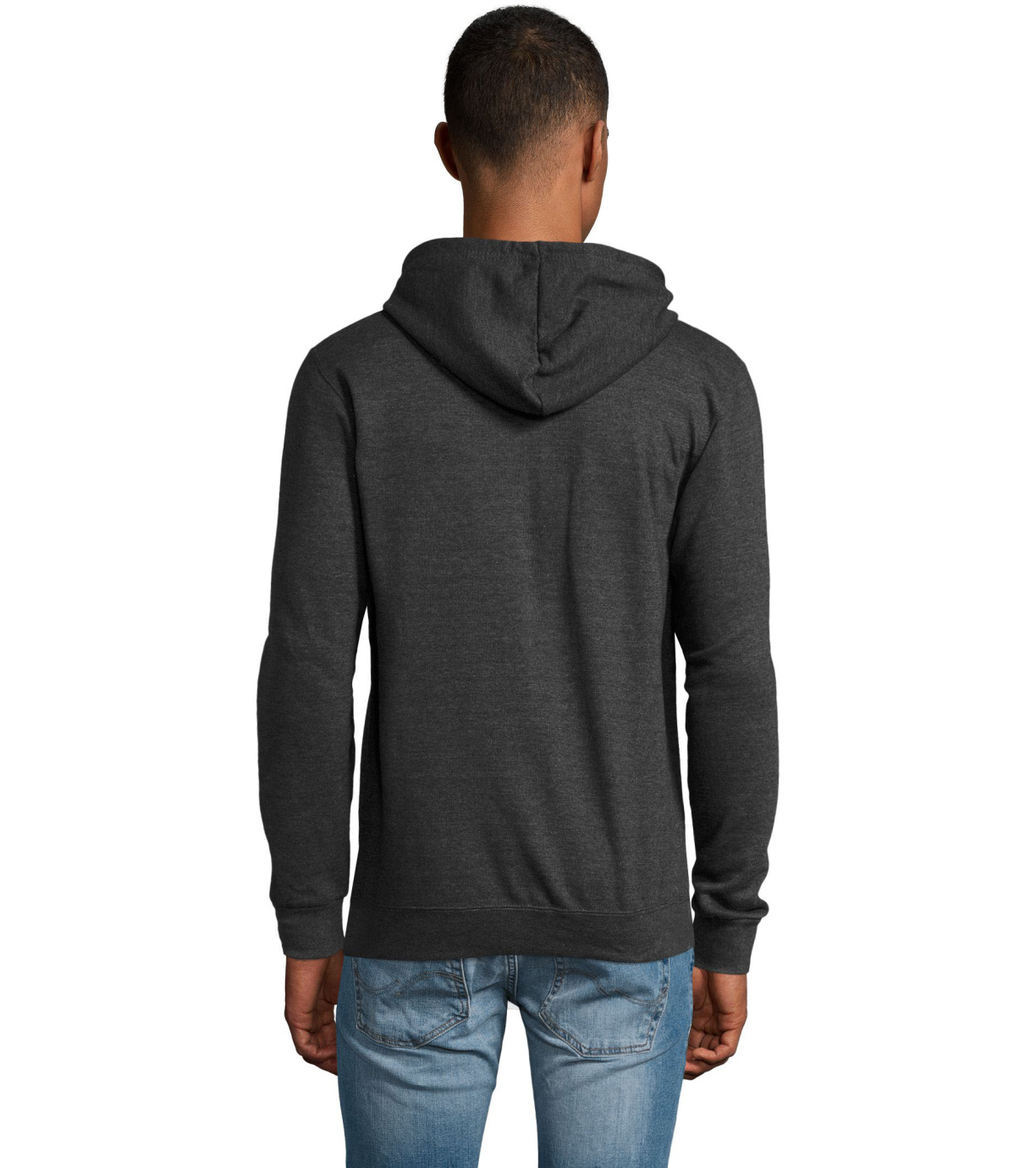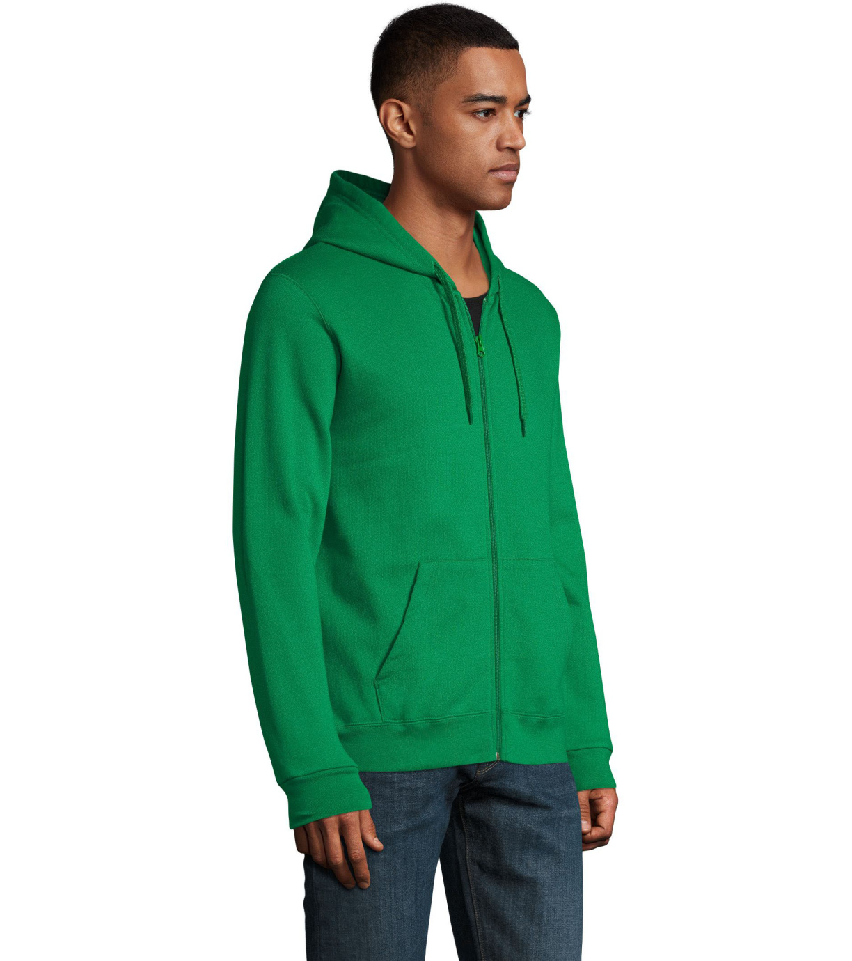 Rozpinana bluza męska. Kaptur ze ściągaczem, prosty krój, kieszeń kangur, elastyczne mankiety.