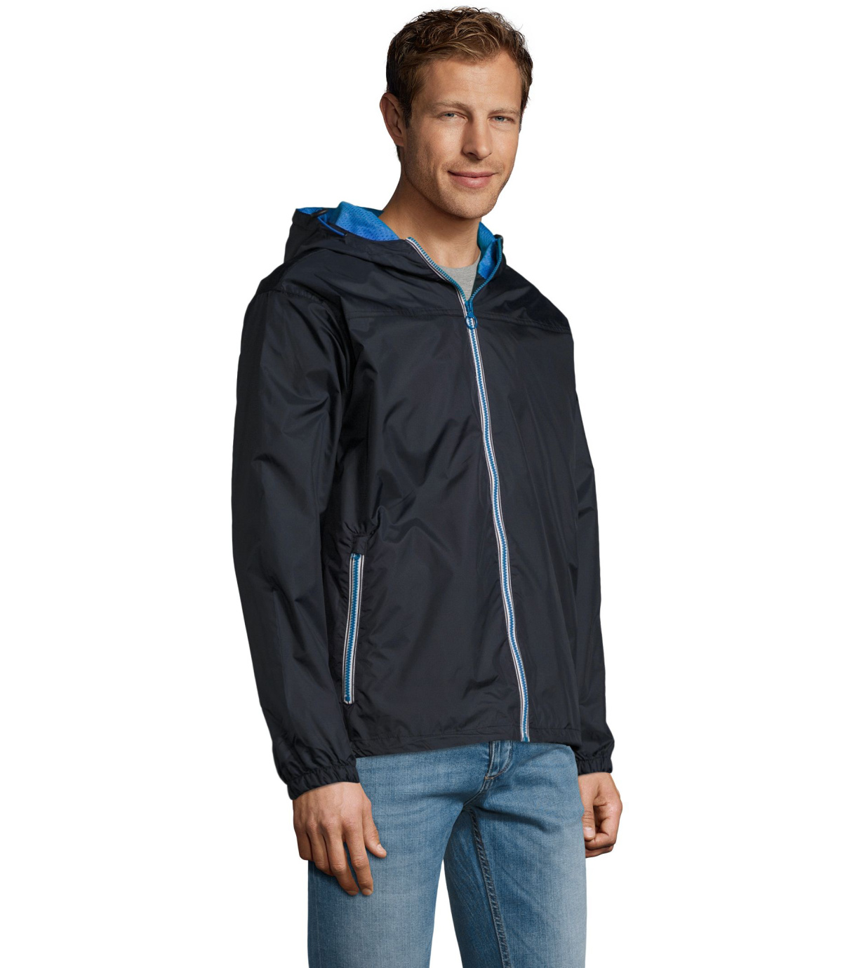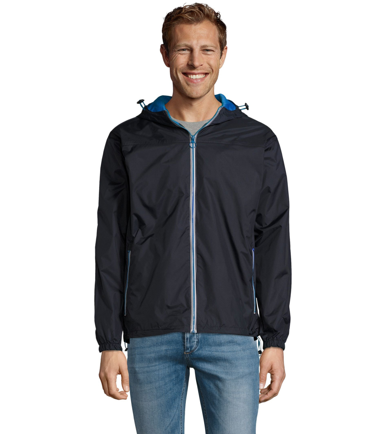 Modna wiatrówka damska w wielu wariantach kolorystycznych z kontrastowymi zamkami i kontrastową podszewką z siateczki. Kaptur jest zintegrowany i regulowany. Wykonana z wiatro i wodoodpornego materiału.