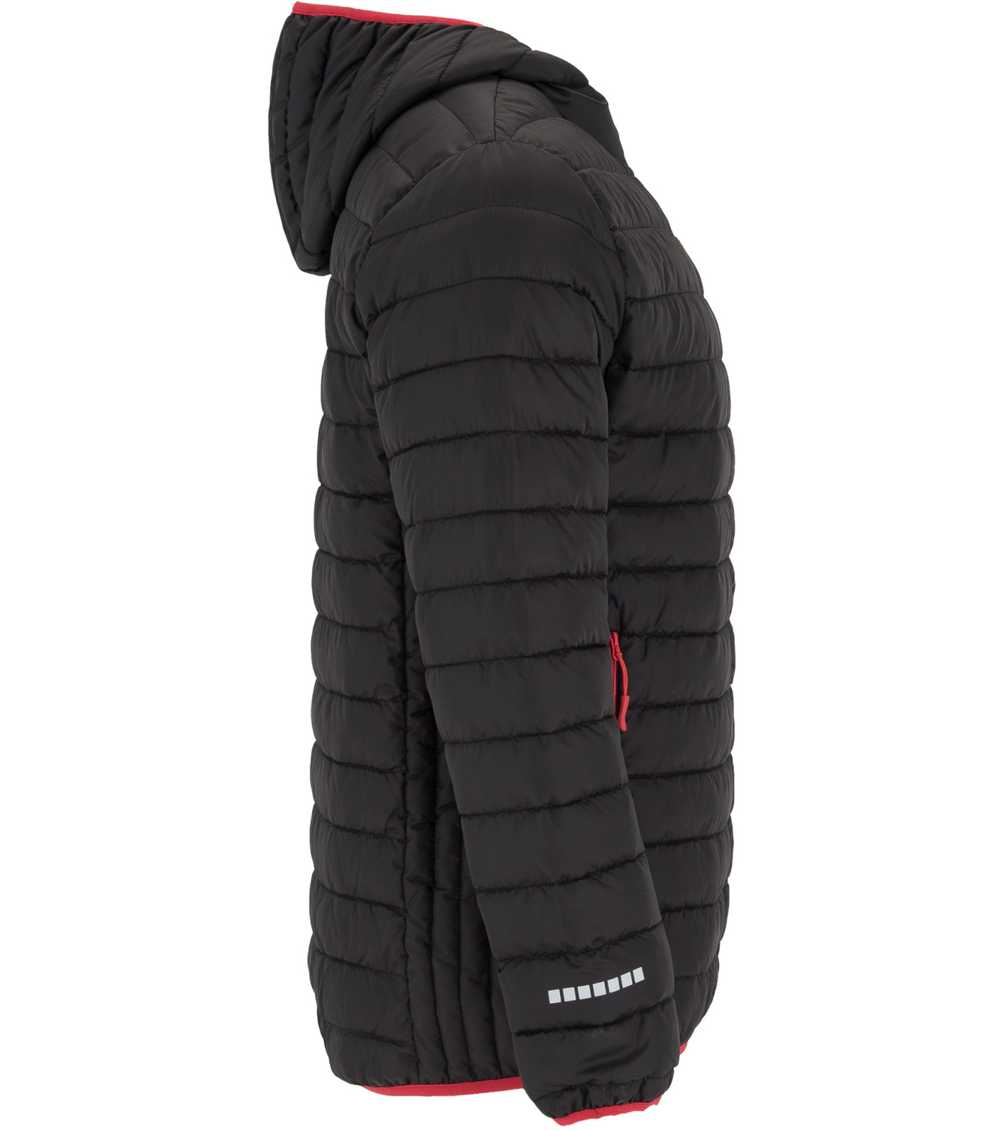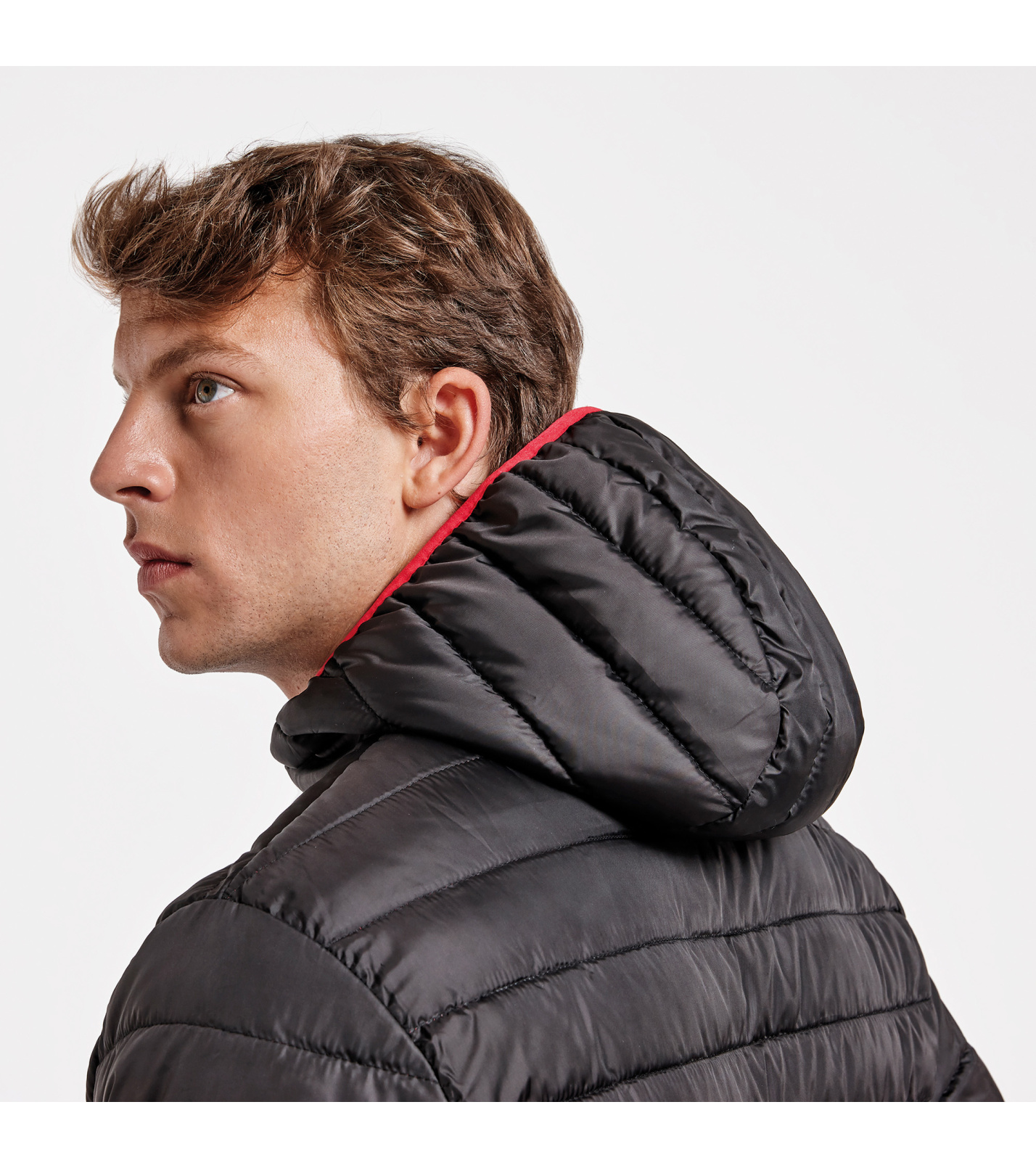 Elastyczne, kontrastowe obszycie mankietów, części dolnej oraz kaptura