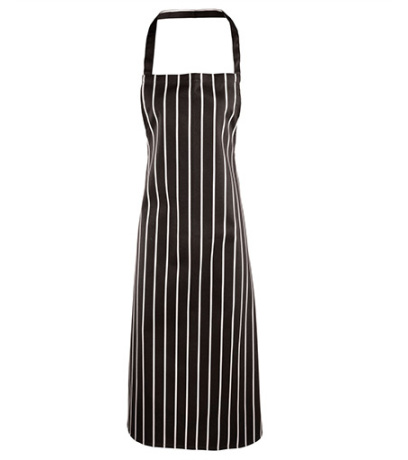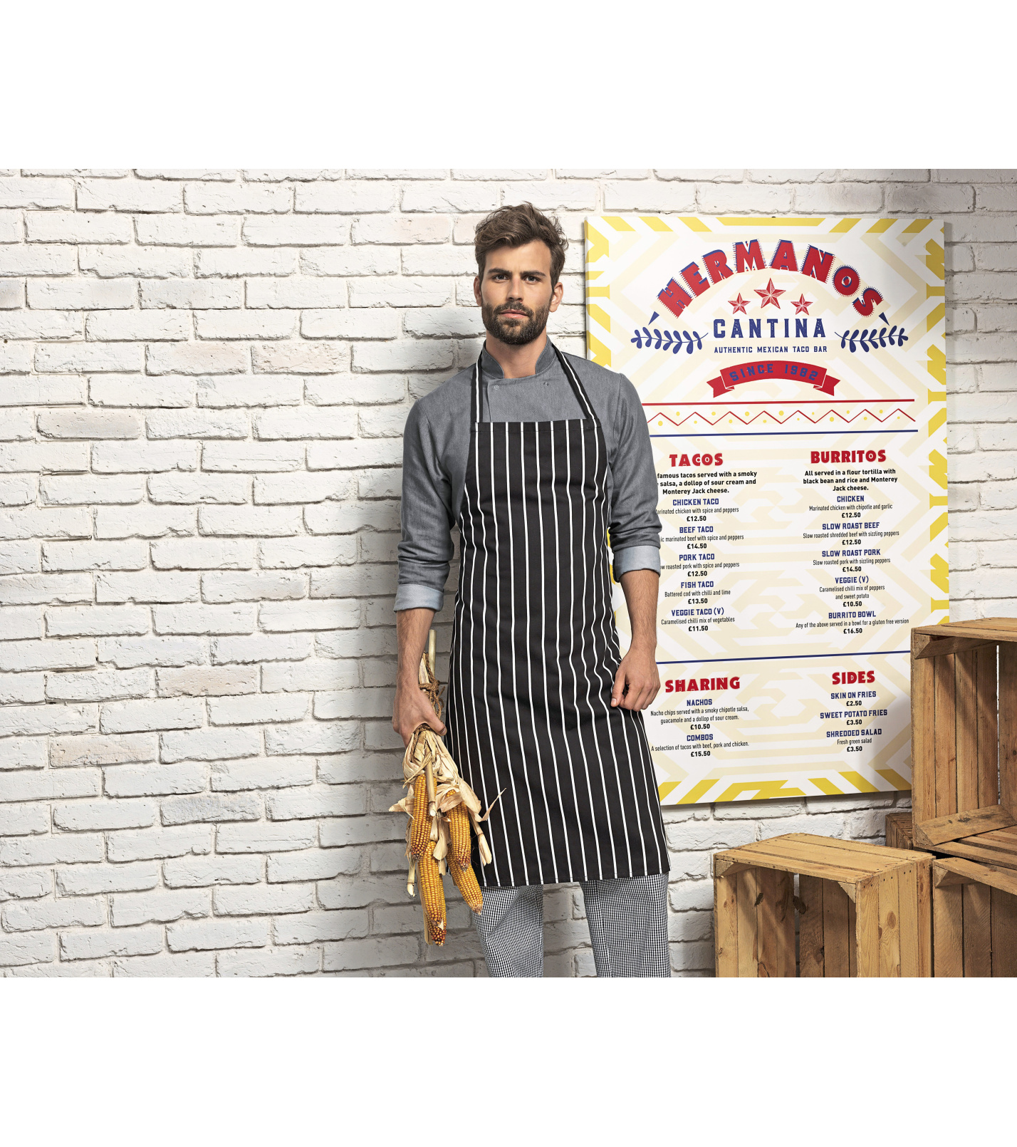 Fartuch w paski w stylu rzeźnikaPasek na szyję z tego samego materiału