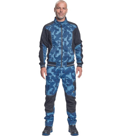 Opis: męska kurtka robocza ze stójką i zapięciem na zamek błyskawiczny; elastyczna innowacyjna tkanina Trifibetex® z nadrukiem moro w połączeniu z TrifibetexPRO® (czterokierunkowy nylon); atrakcyjny design i ergonomiczny krój; wzmocnienie ramion materiałem CORDURA; 2 kieszenie boczne; 2 kieszenie napiersiowe na suwak; mankiety zakończone elastycznymi ściągaczami z ozdobnymi paskami; dekoracyjne potrójne szwy; detale odblaskowe ton w ton