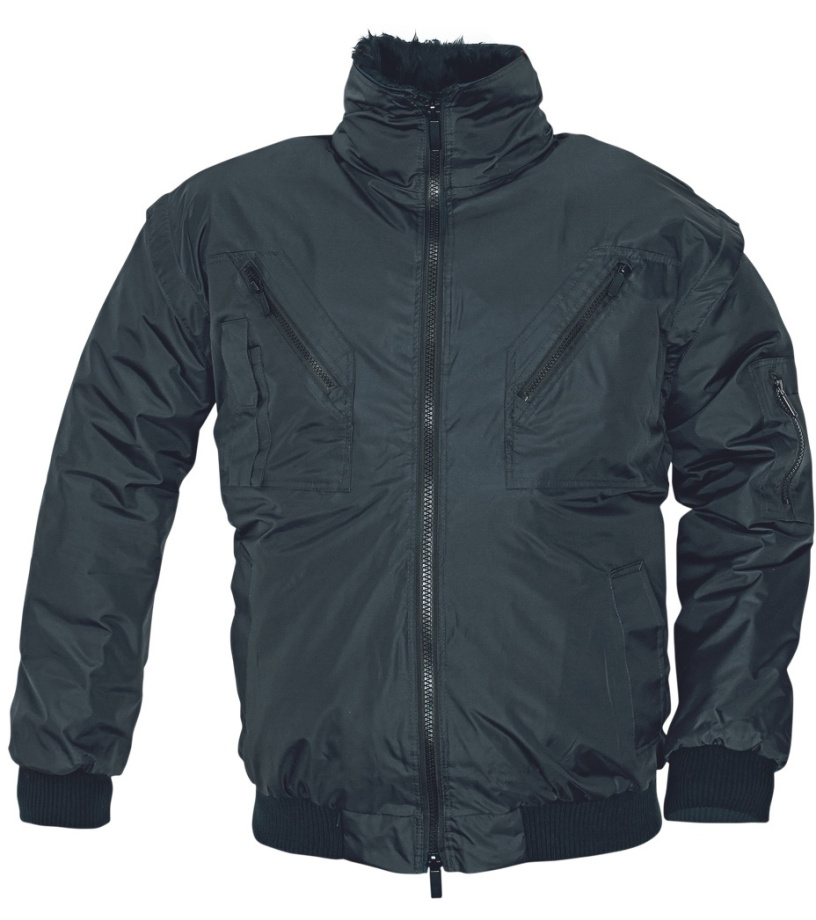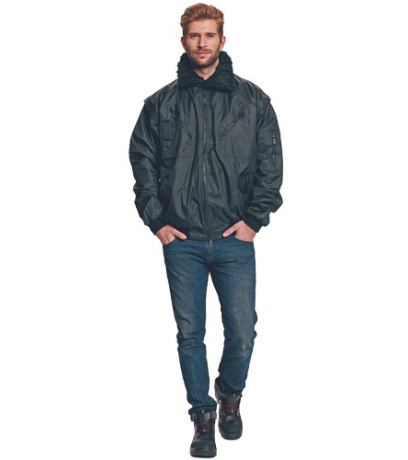 Opis: • ocieplana kurtka „pilotka” z odpinaną podszewką i rękawami • kaptur zintegrowany z kołnierzem • dopinany na rzep kołnierz ze sztucznego futra • obszycie i mankiety wykonane z prążkowanej dzianiny