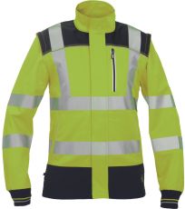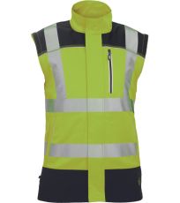 Opis: męska kurtka robocza HI-VIS z odpinanymi rękawami • zapięcie na suwak kryte plisą • wzmocnienia na ramionach z materiału Oxford 600D • 2 kieszenie boczne • 1 kieszeń napiersiowa • nadrukowane taśmy odblaskowe o szer. 5 cm • odblaskowy piping • elastyczne wykończenie mankietów