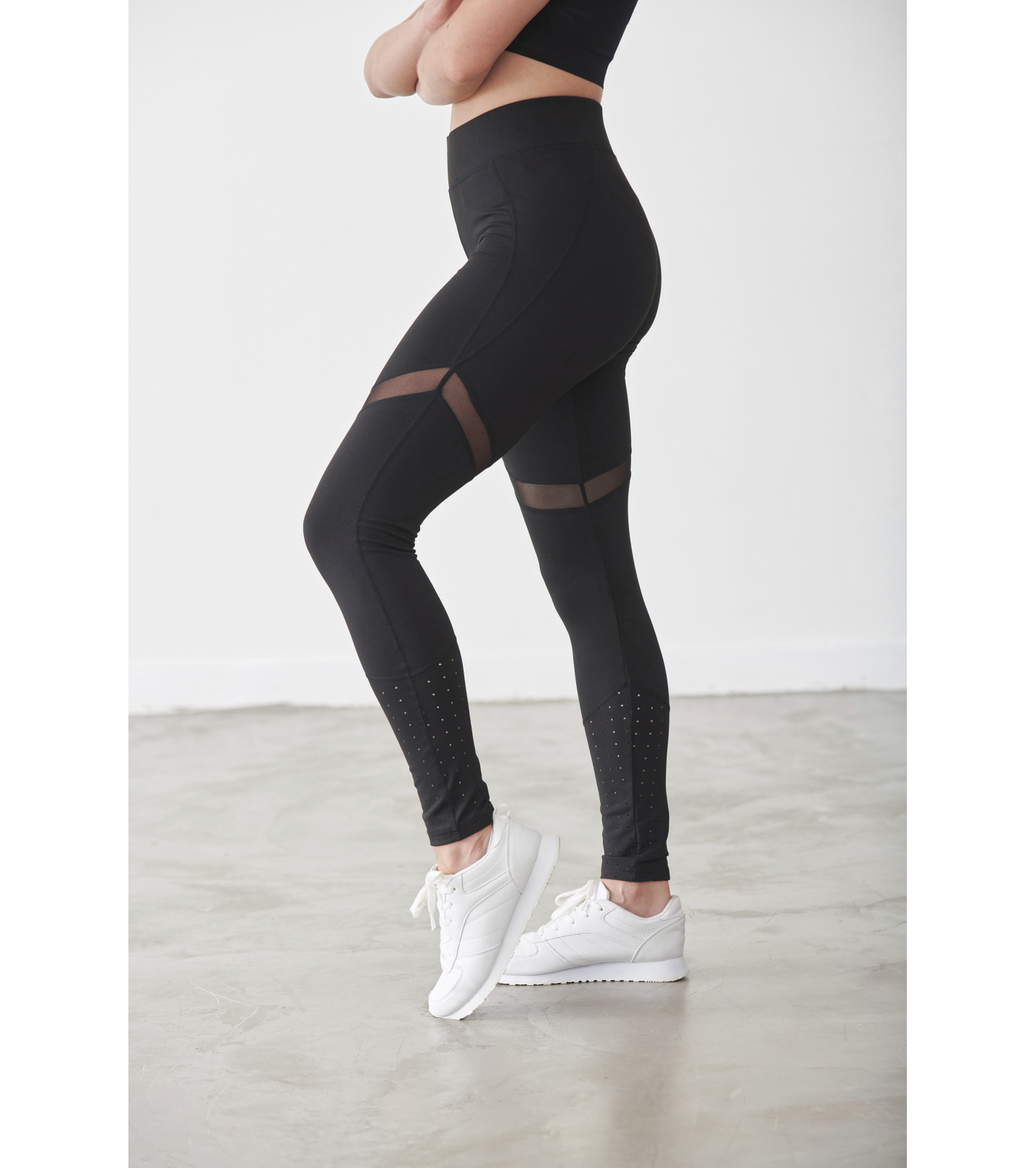 Laserowo wycięte elementy w dole łydek, z przodu i z tyłu