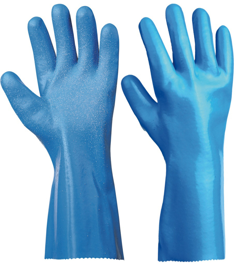 Opis: Szyta dzianina bawełniana powlekana PCV z nitrylem, ochrona przed ryzykiem mechanicznym i chemicznym, rozmiary długość 32 cm.