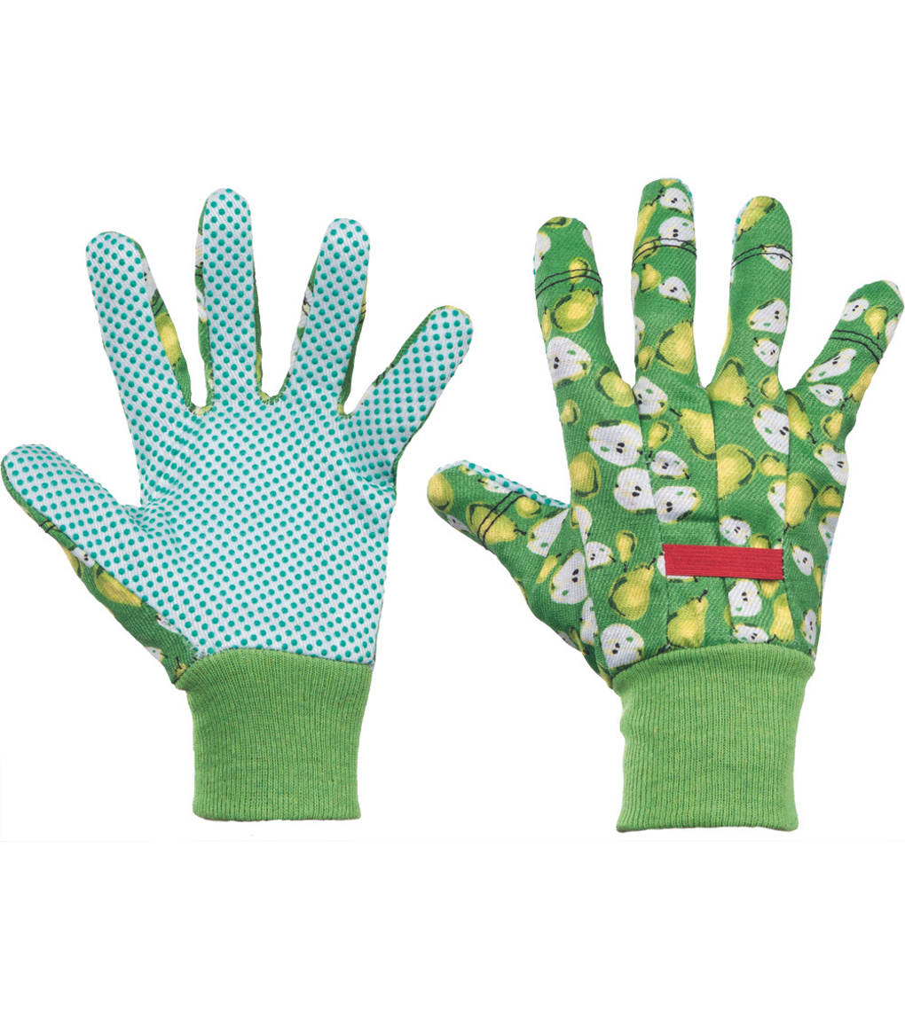 Bawełniane rękawiczki z nakrapianymi nakładkami z PVC dla lepszego chwytu. Z mankietem. Pochłaniają wilgoć. Idealne do prac takich jak przesadzanie roślin.