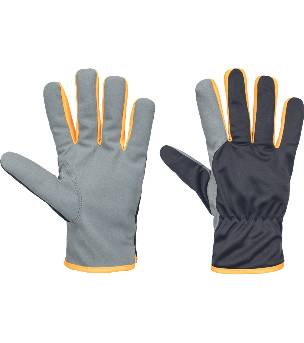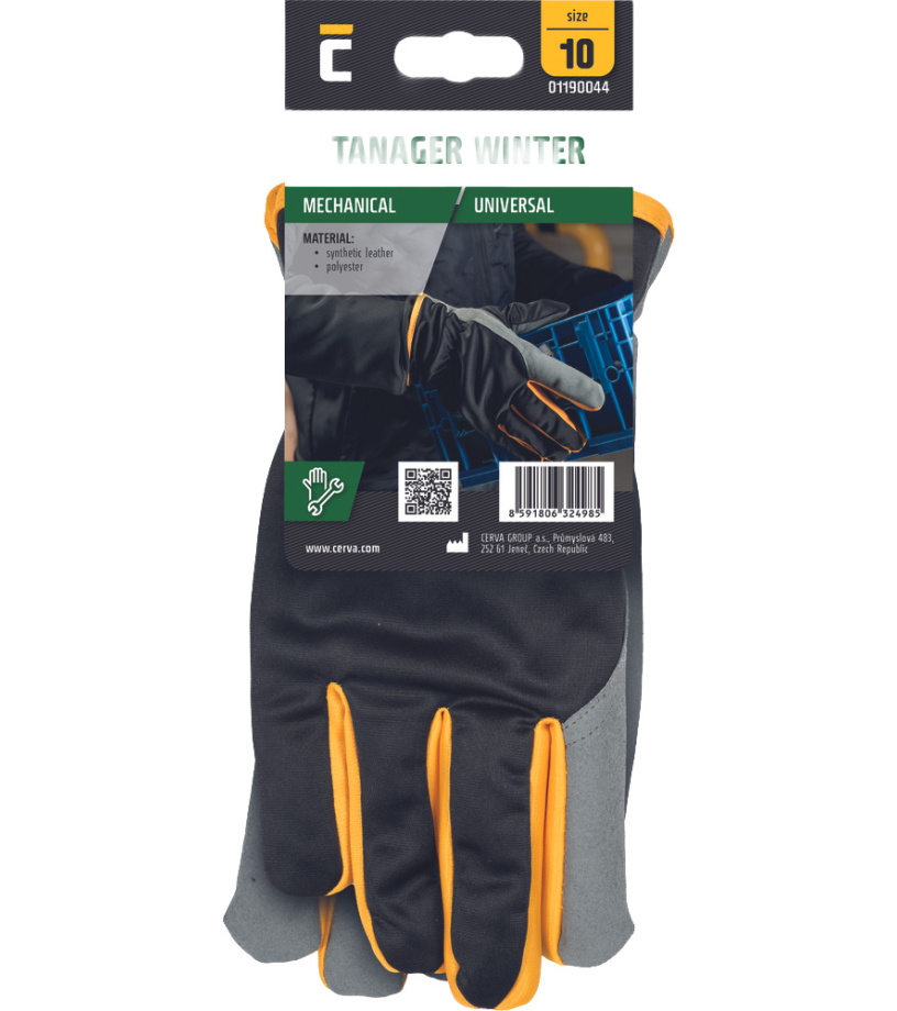 Zimowa, ocieplana wersja rękawic TANGER, wykonana z syntetycznej skóry (mikrofibry) na dłoni i czarnego poliestru na wierzchu. Oferują doskonałe właściwości mechaniczne, są wygodne i oddychające.