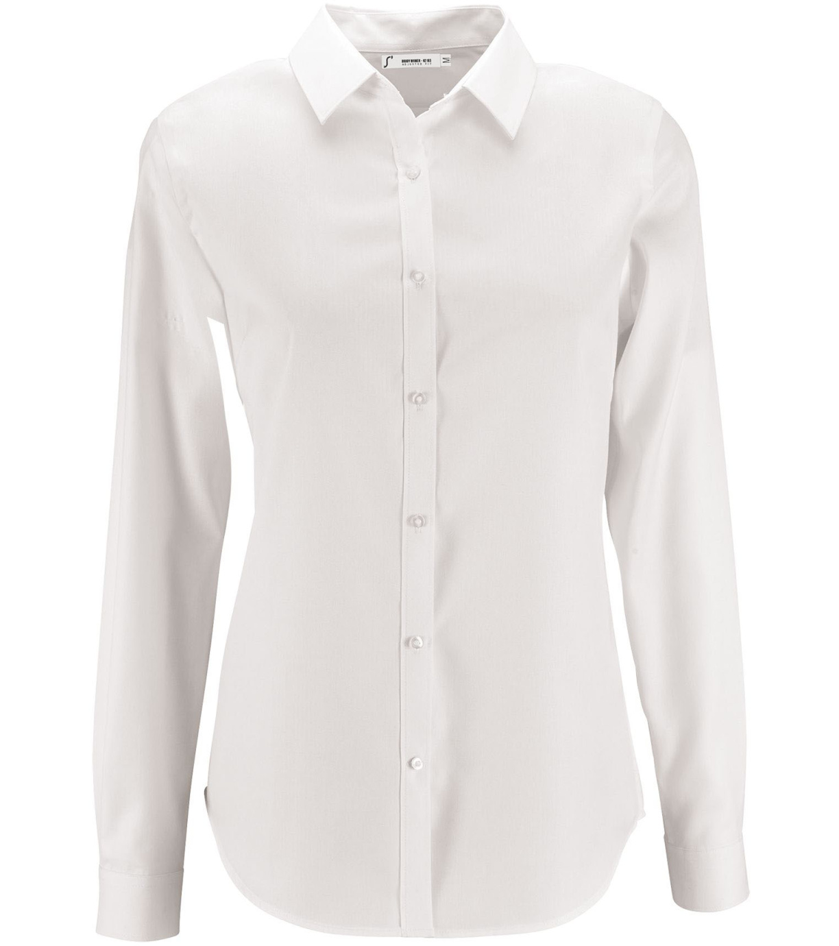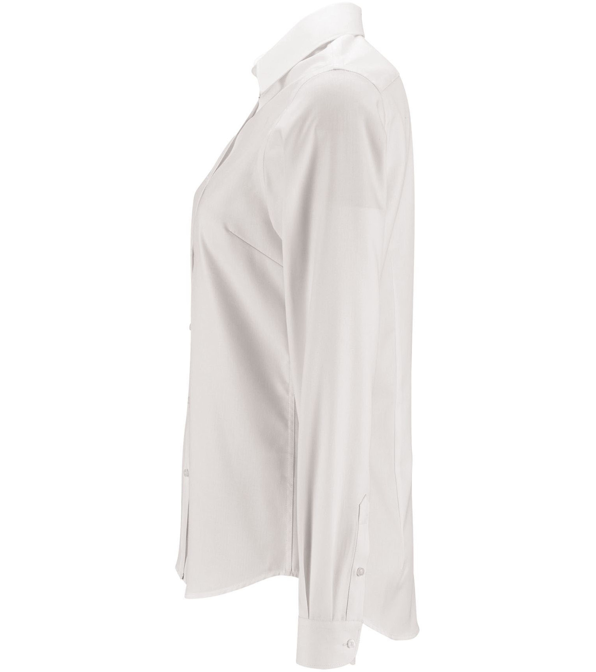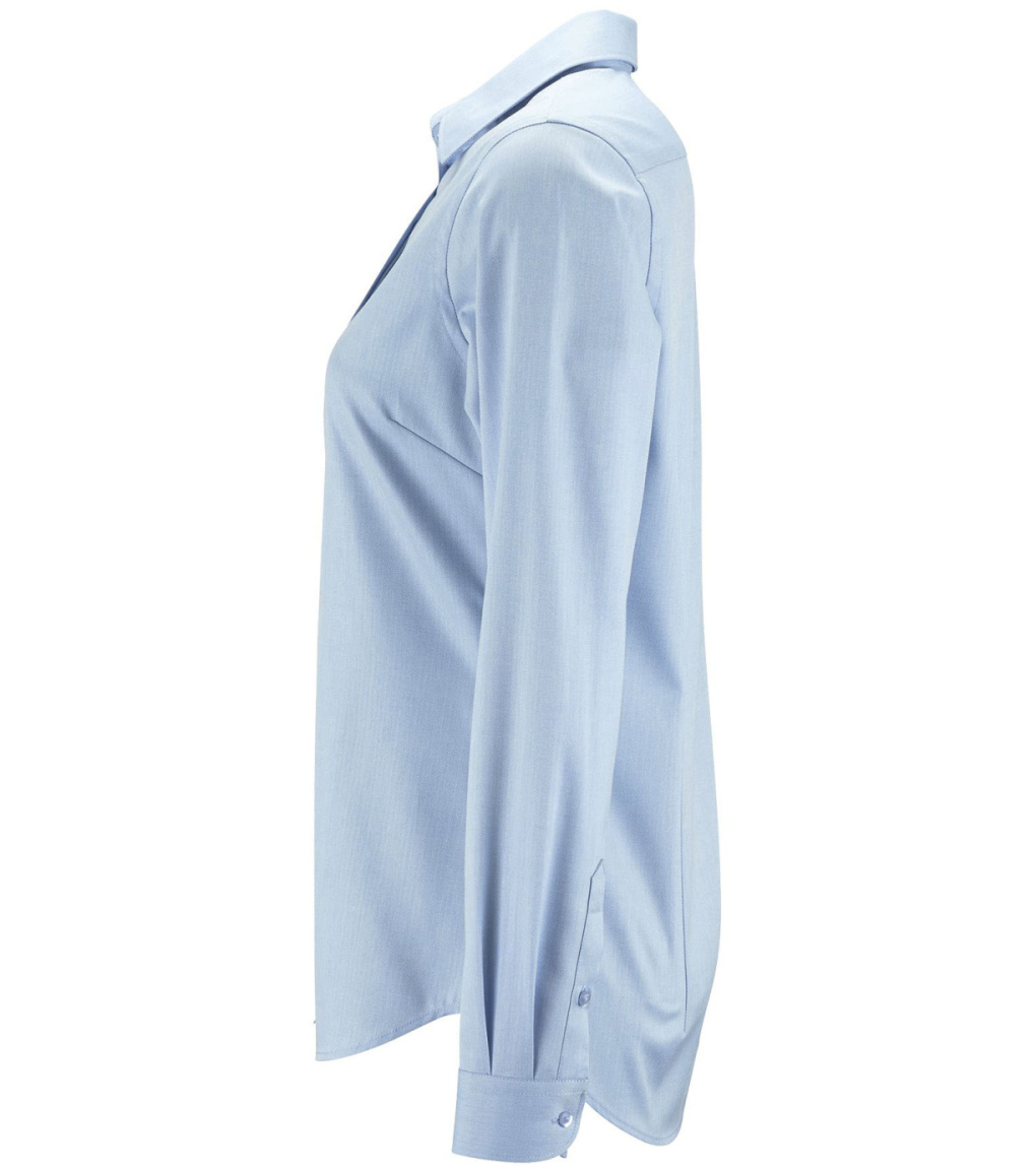 Damska koszula z długim rękawem. Krój slim fit z klasycznym kołnierzem. Rękawy zakończone są guzikami i rozcięciem. Zapinana na guziki w kolorze materiału. Materiał ma przezroczystą strukturę.