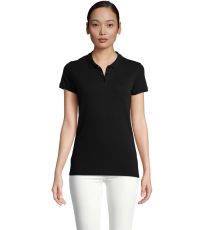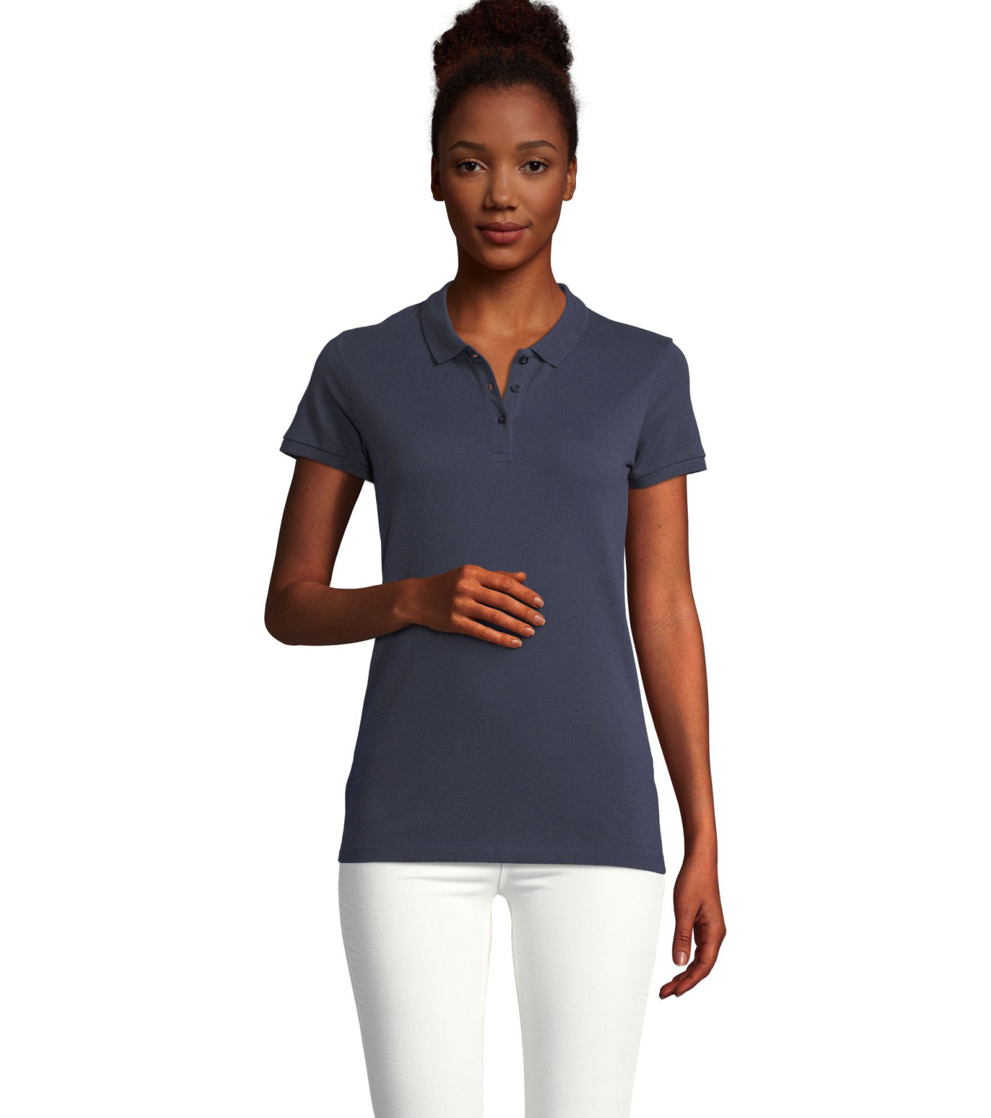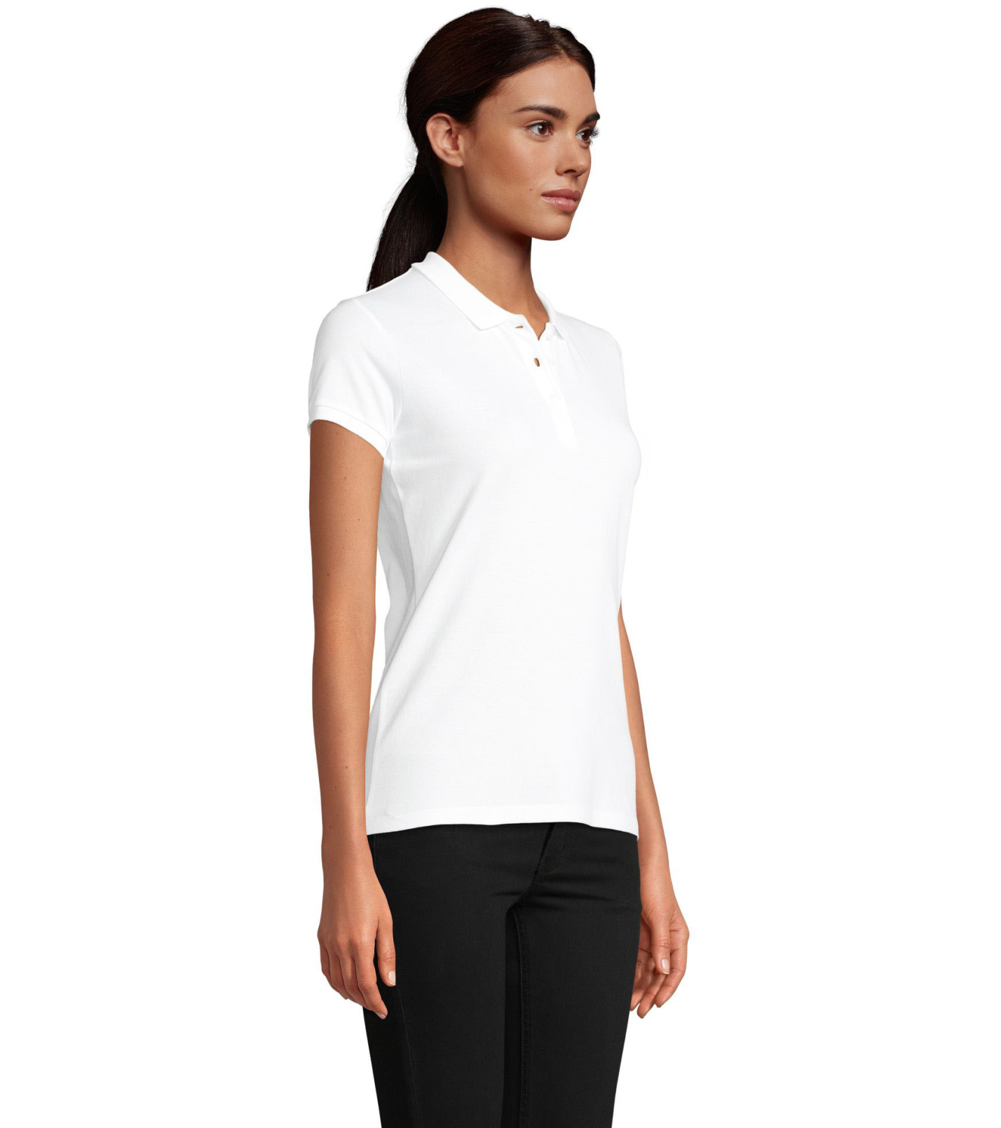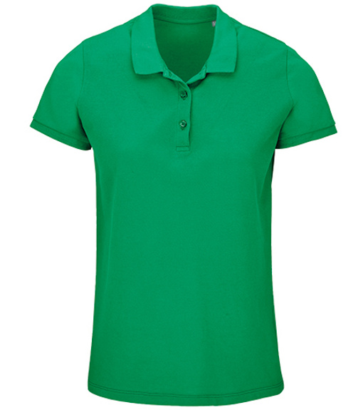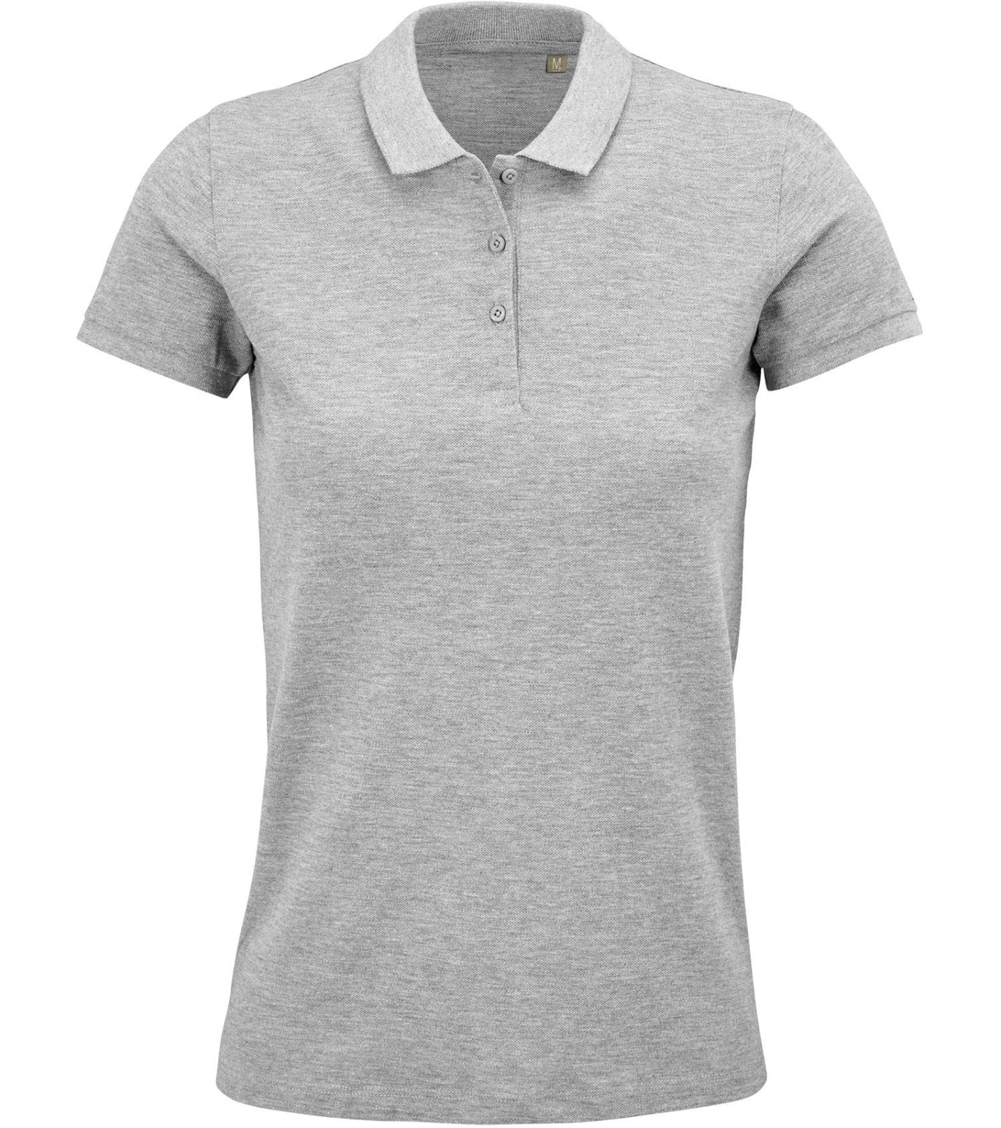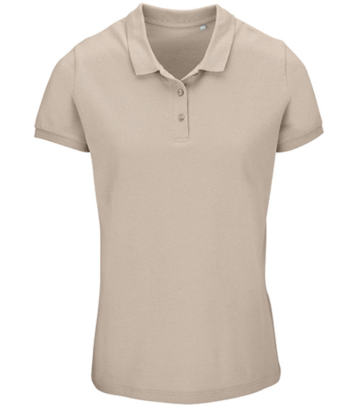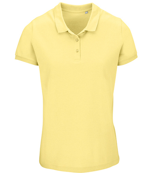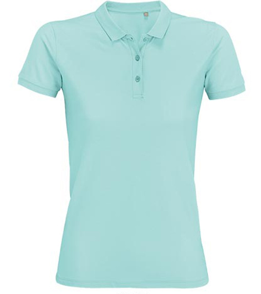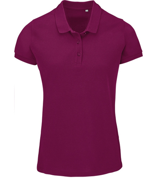 Damska koszulka polo z ekologicznej bawełny z krótkim rękawem. Prosty dół, boczne szwy i prążkowany kołnierz. Koszulka polo posiada trzy guziki w kolorze koszulki do zapięcia pod szyją oraz jeden zapasowy guzik w wewnętrznym szwie bocznym.