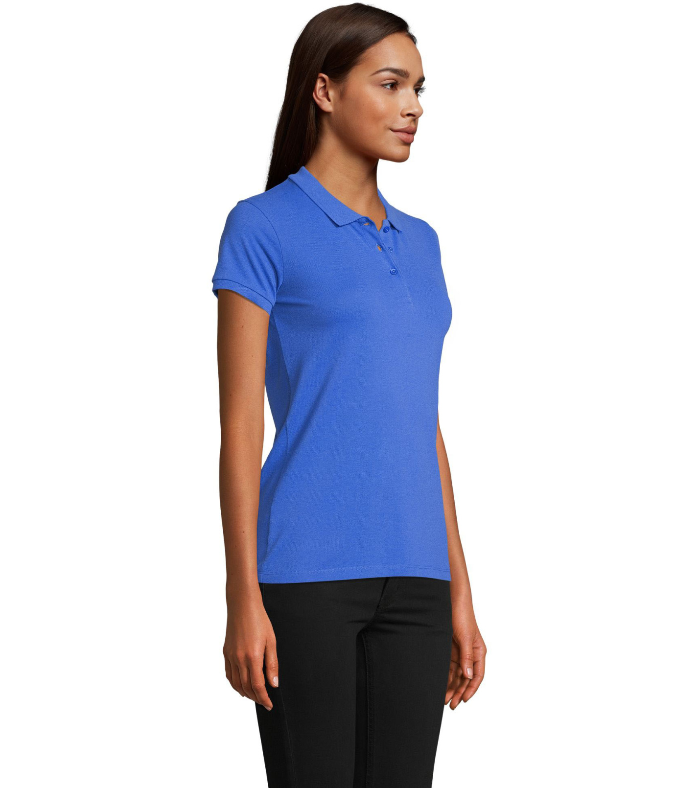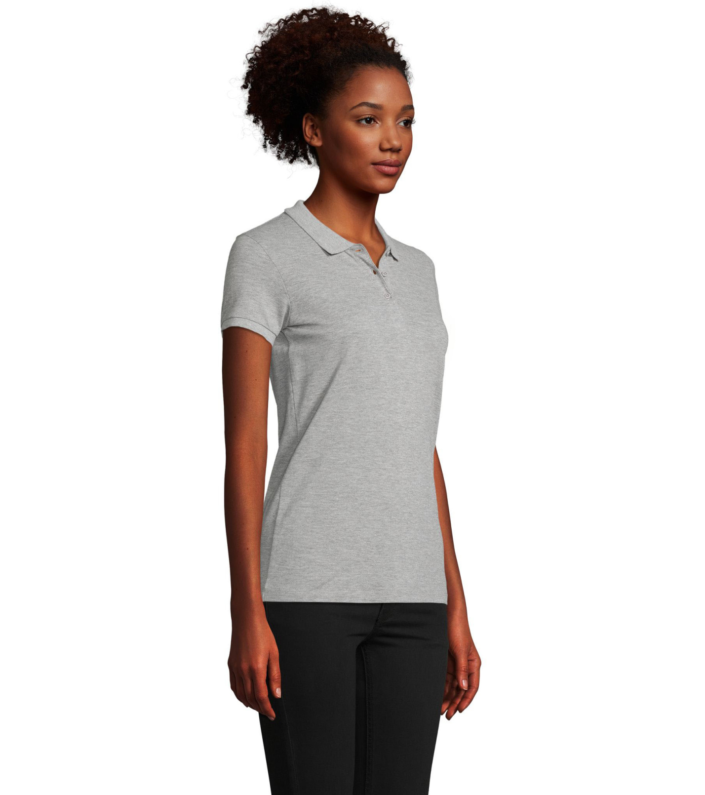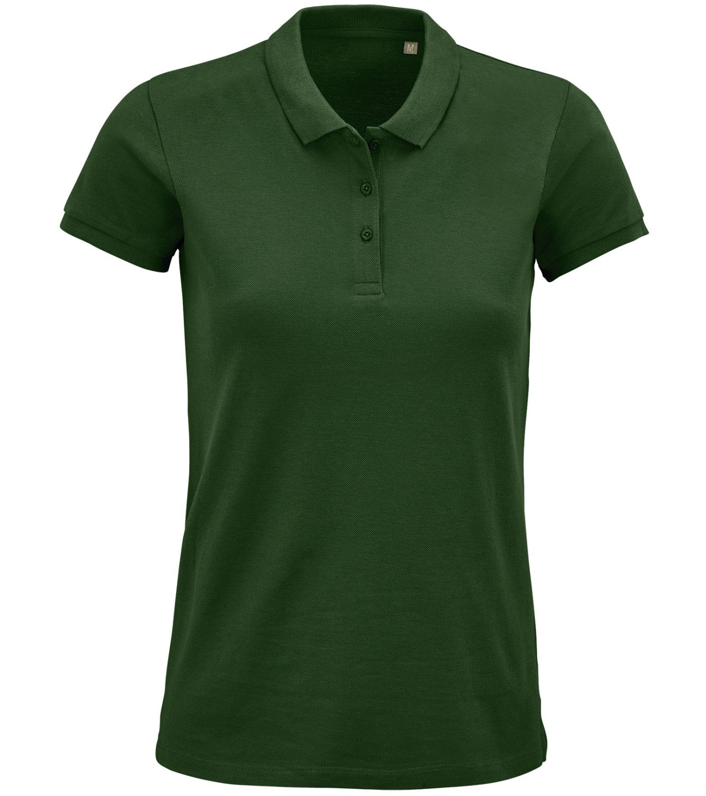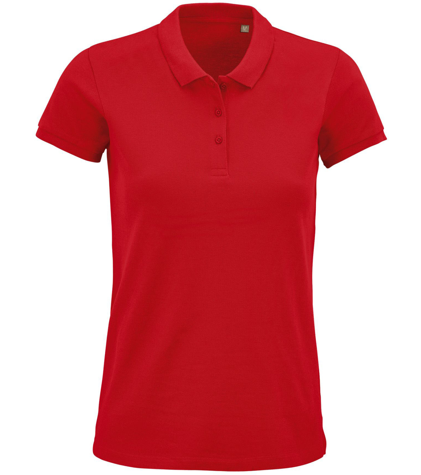 Damska koszulka polo z ekologicznej bawełny z krótkim rękawem. Prosty dół, boczne szwy i prążkowany kołnierz. Koszulka polo posiada trzy guziki w kolorze koszulki do zapięcia pod szyją oraz jeden zapasowy guzik w wewnętrznym szwie bocznym.