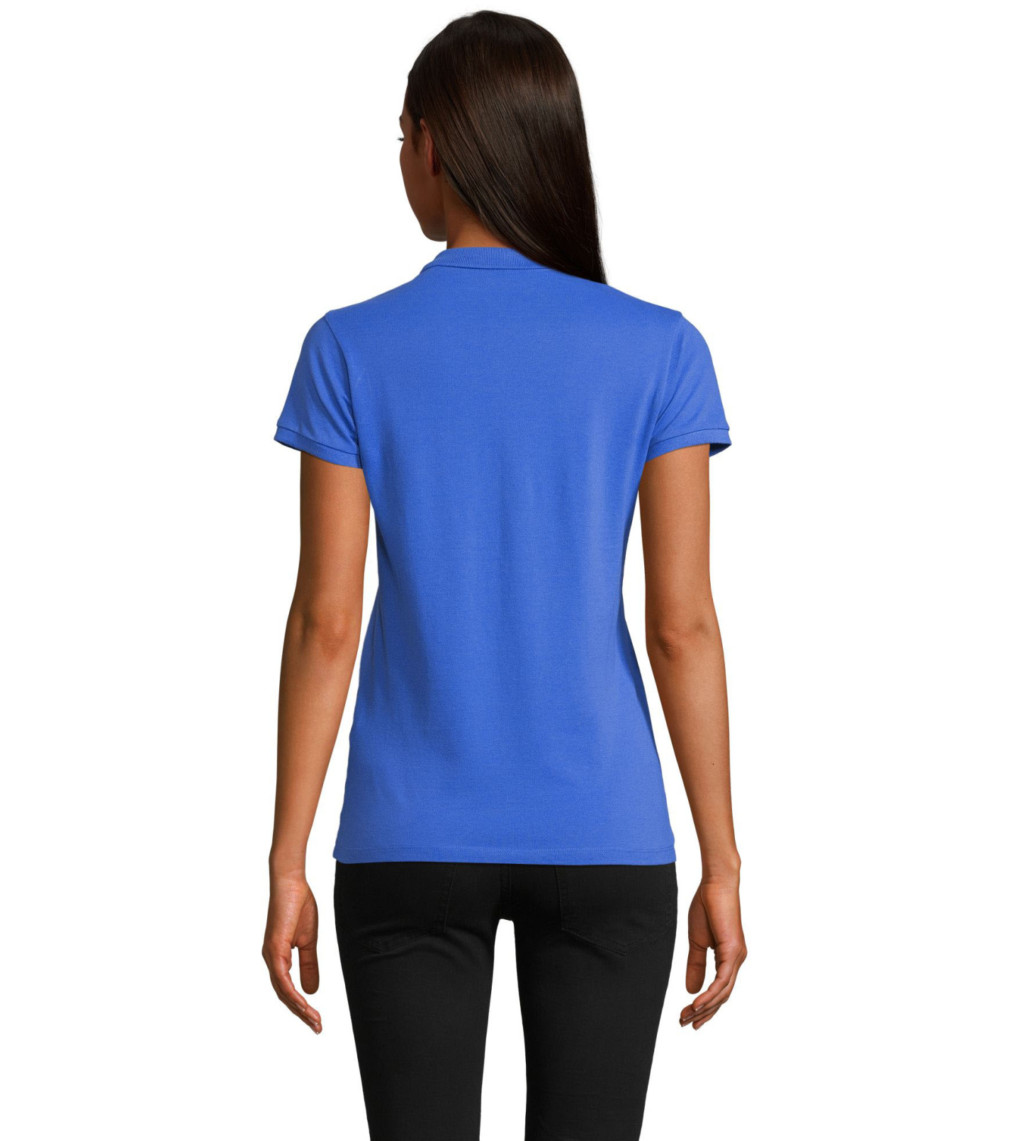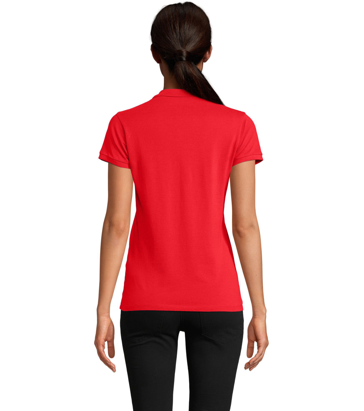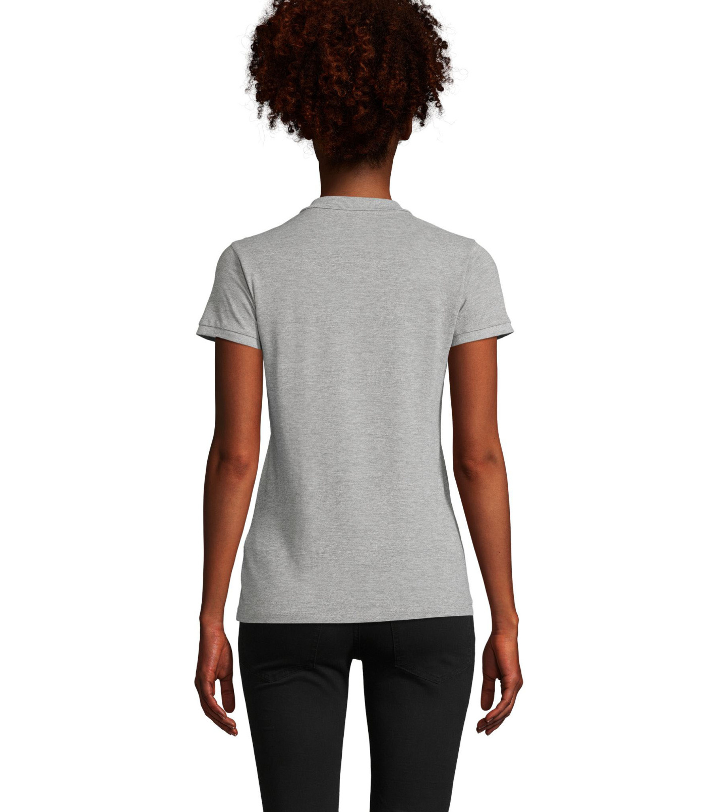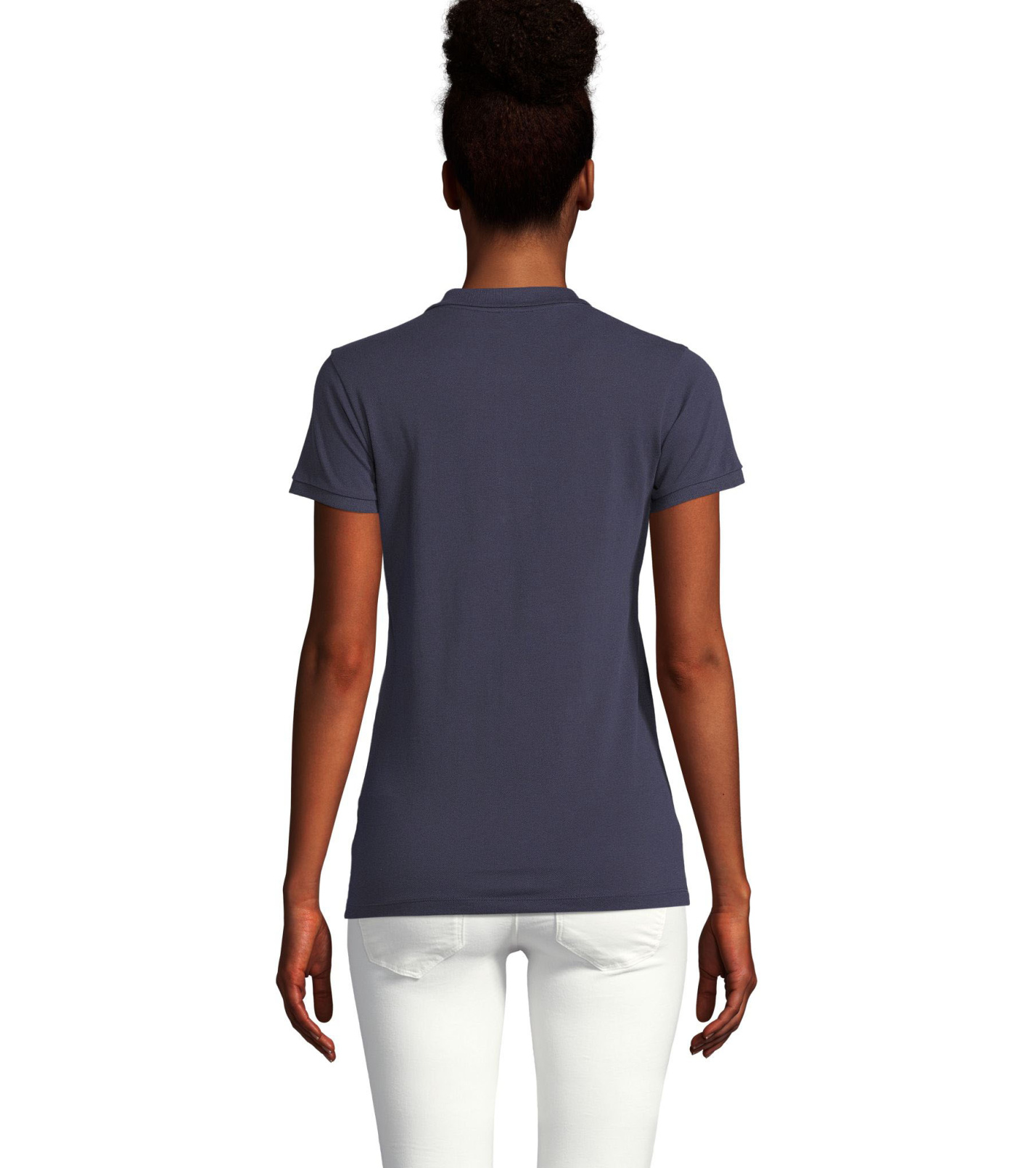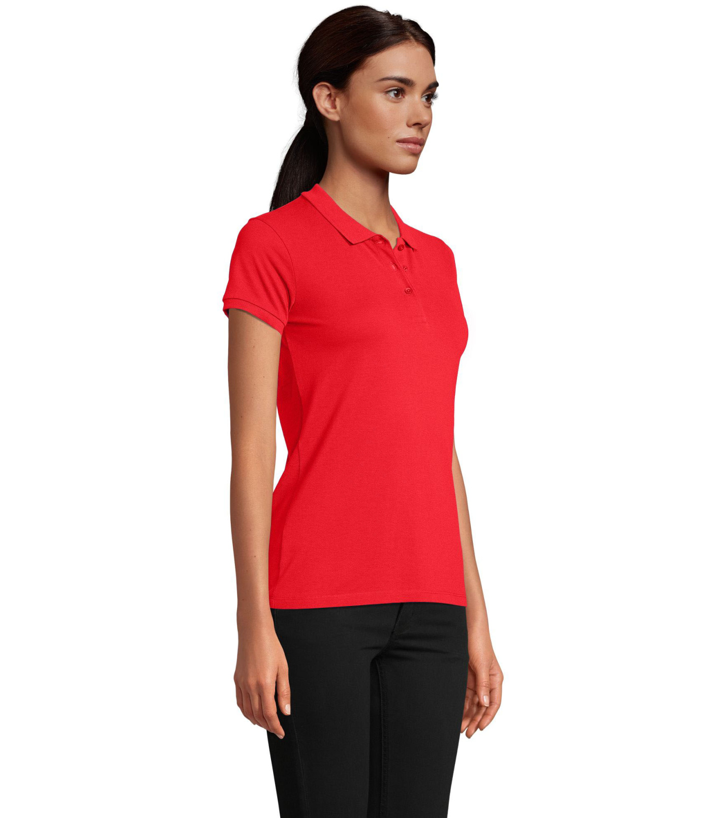 Damska koszulka polo z ekologicznej bawełny z krótkim rękawem. Prosty dół, boczne szwy i prążkowany kołnierz. Koszulka polo posiada trzy guziki w kolorze koszulki do zapięcia pod szyją oraz jeden zapasowy guzik w wewnętrznym szwie bocznym.