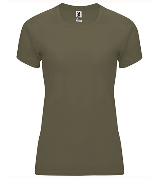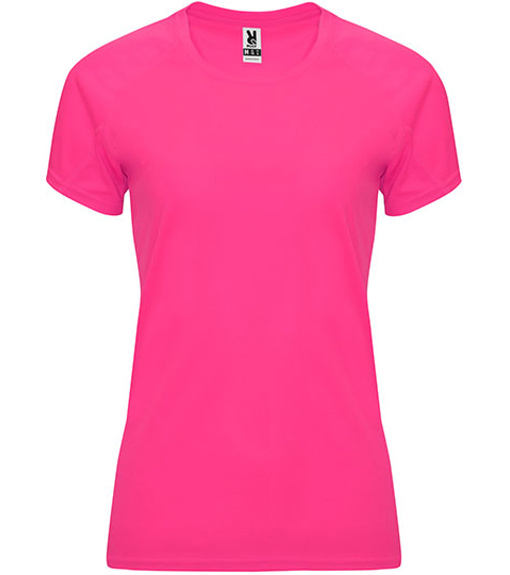 Funkcjonalny t-shirt damski z waflowym splotem i krótkimi raglanowymi rękawkamiOkrągły dekolt z taśmą wzmacniającą na karku w pasującym kolorze