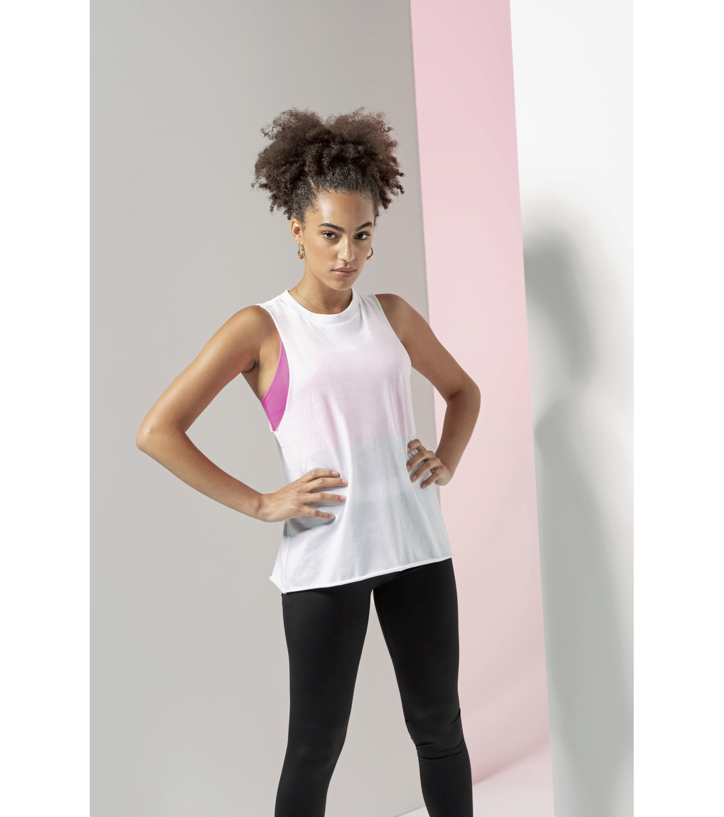 Surowe krawędzie na wykroju pach i u dołu koszulki