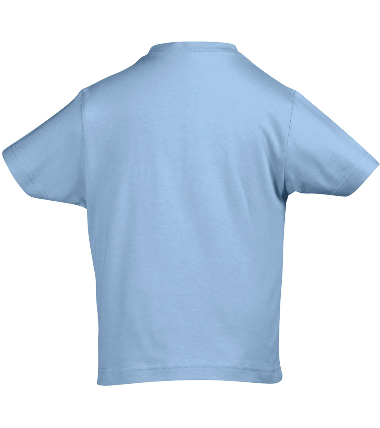 Bawełniana koszulka dziecięca z krótkim rękawem. Klejony brzeg wokół szyi i elastyczny kołnierz.