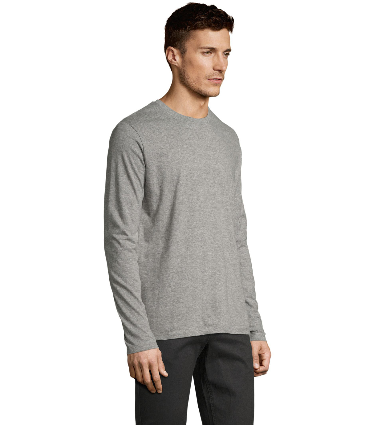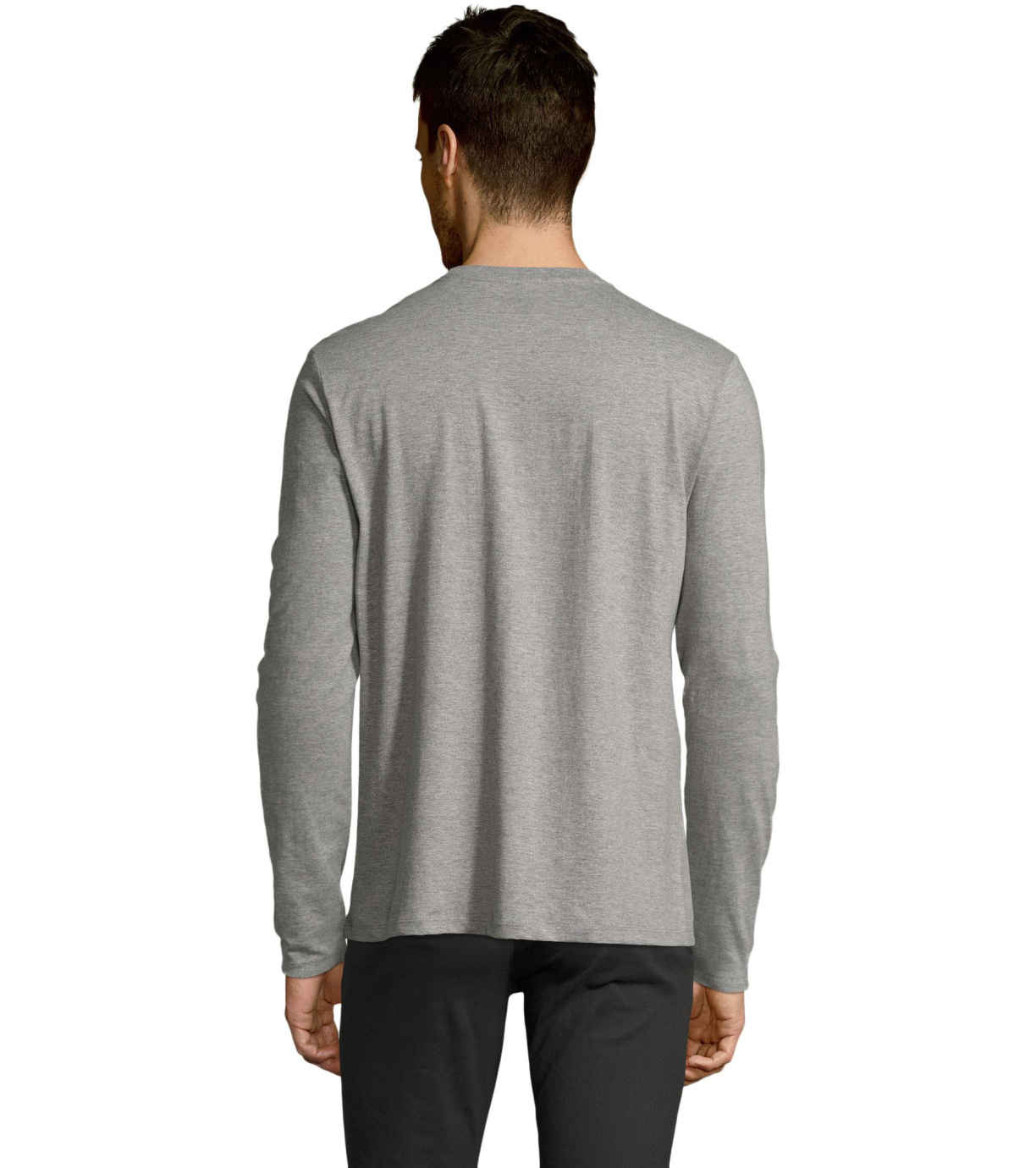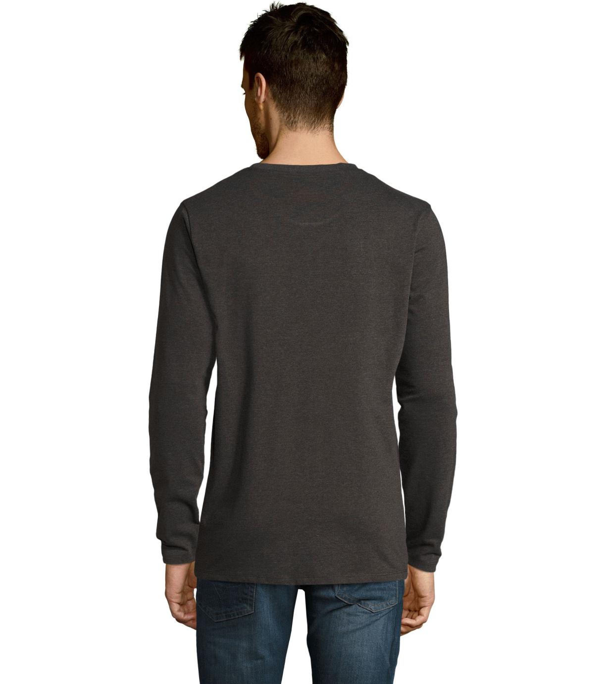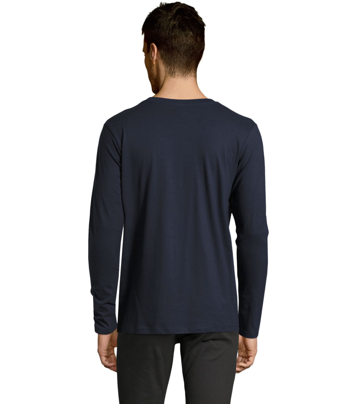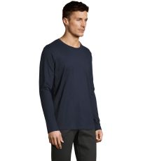 Męski T-shirt z długim rękawem. Kołnierzyk wykończony jest elastyczną lamówką ze ściągaczem.