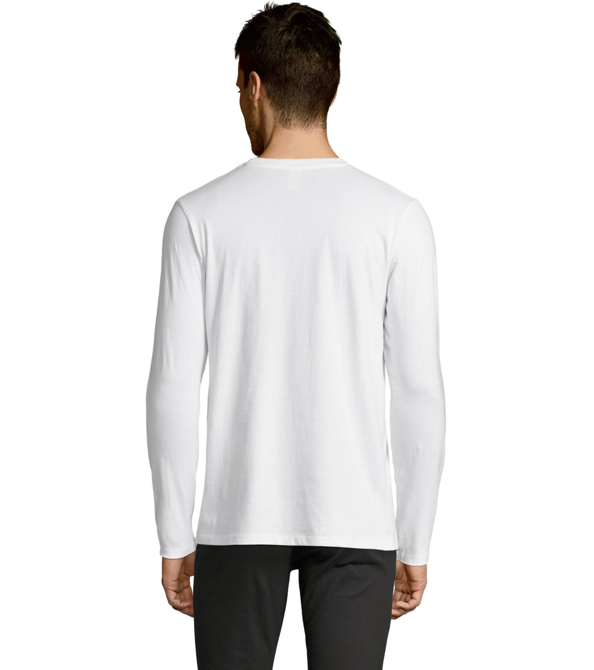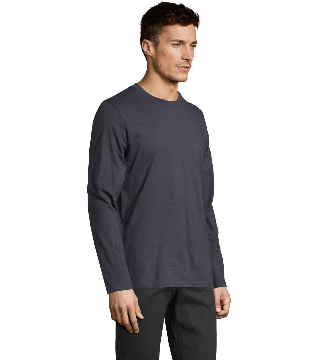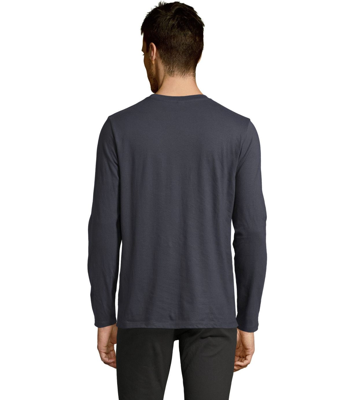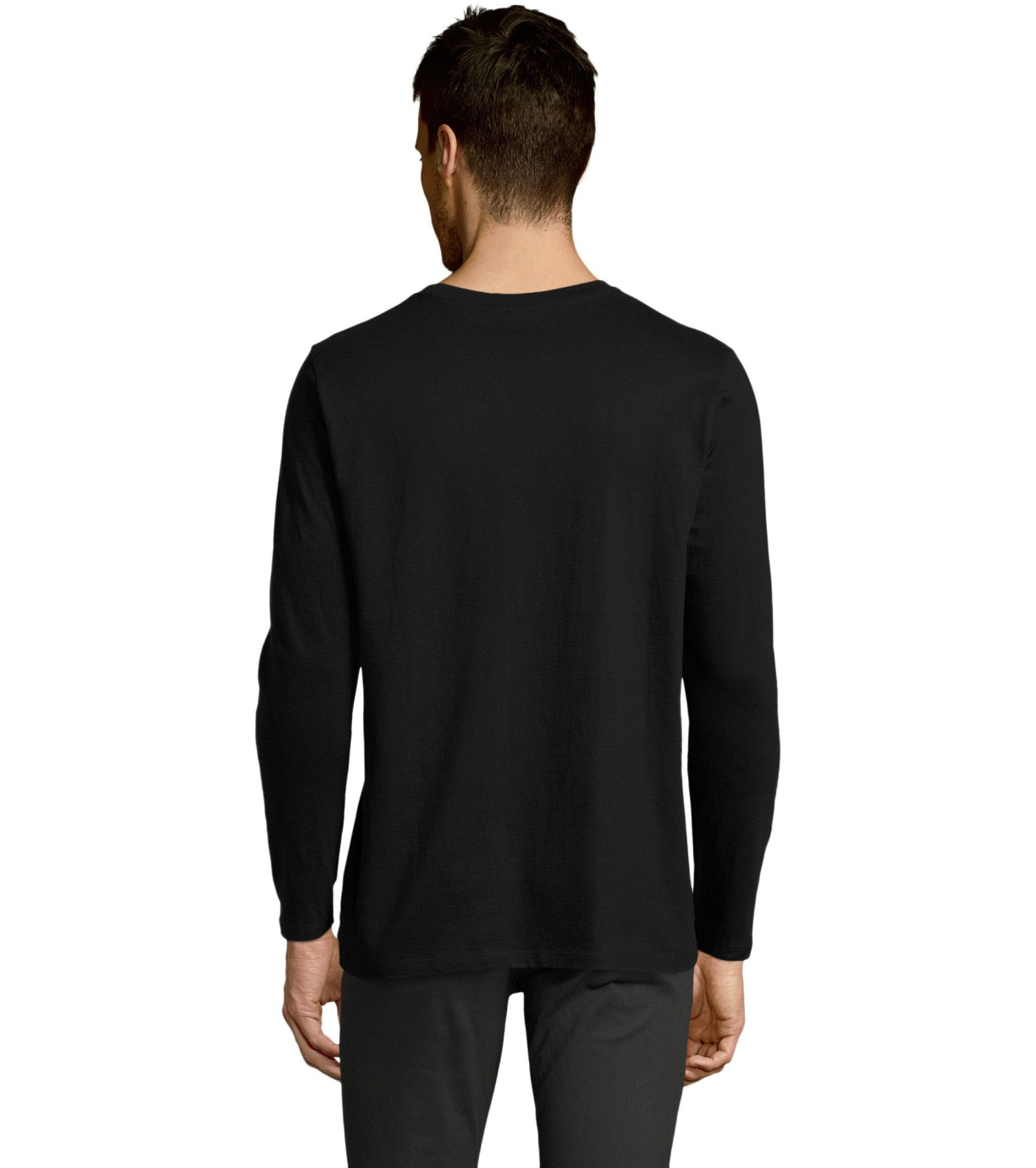Męski T-shirt z długim rękawem. Kołnierzyk wykończony jest elastyczną lamówką ze ściągaczem.