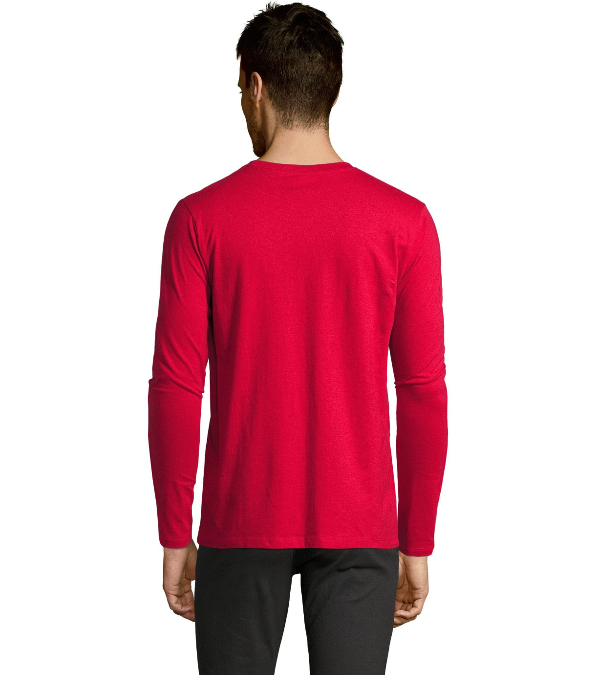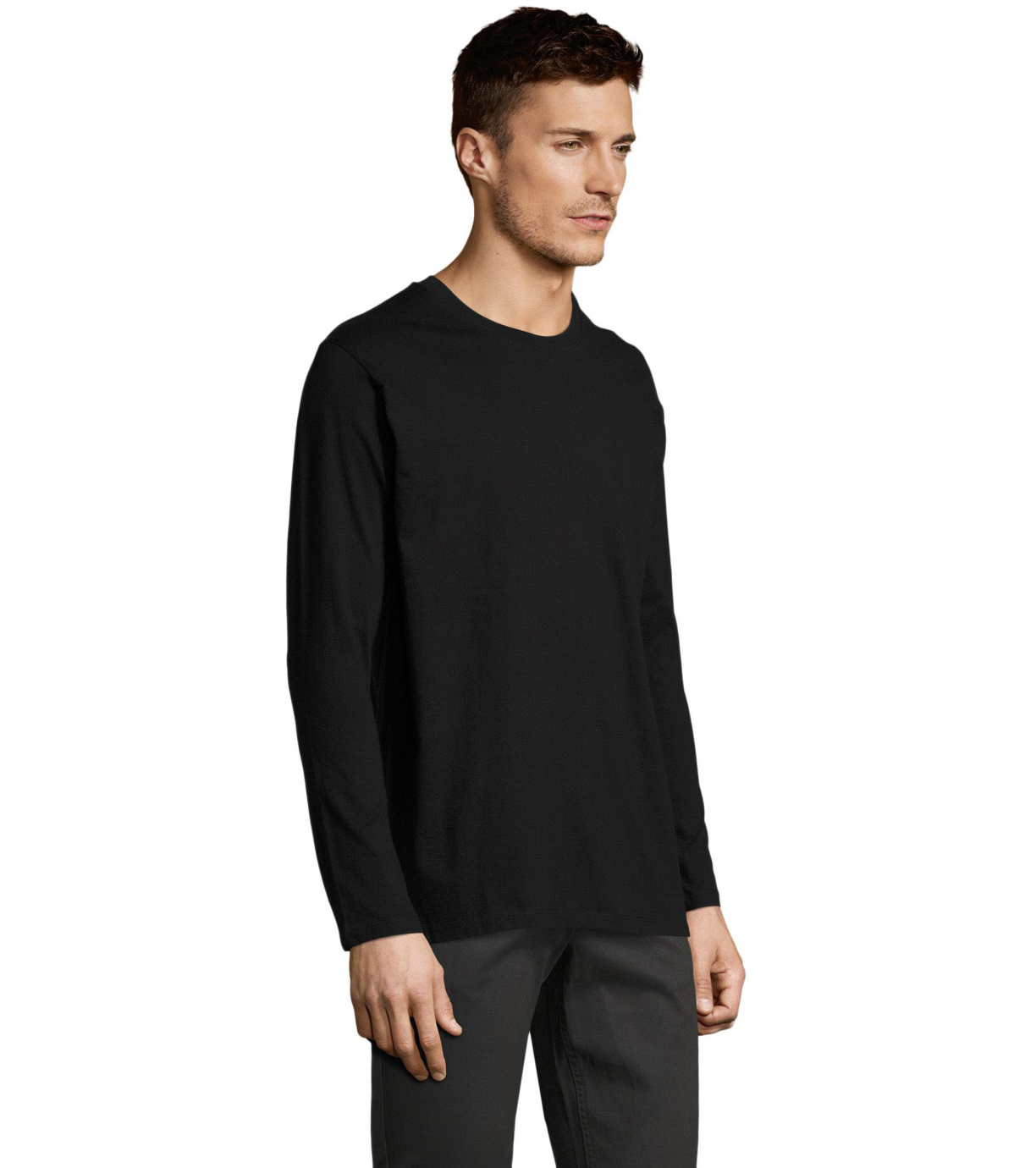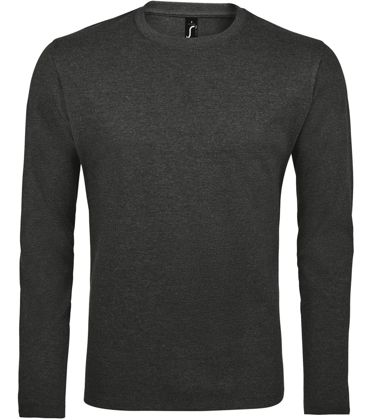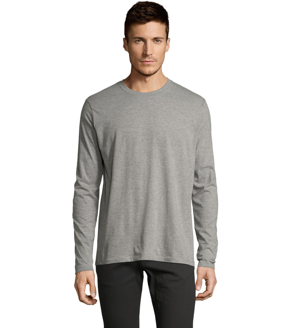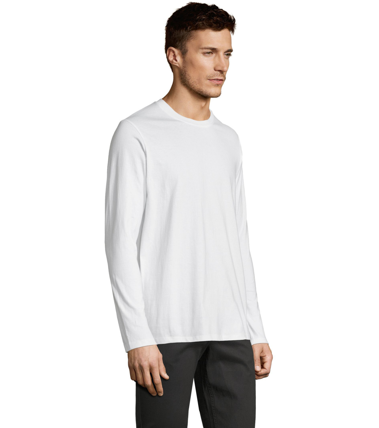 Męski T-shirt z długim rękawem. Kołnierzyk wykończony jest elastyczną lamówką ze ściągaczem.