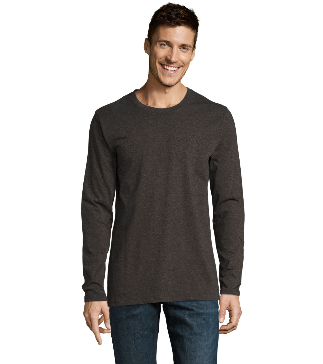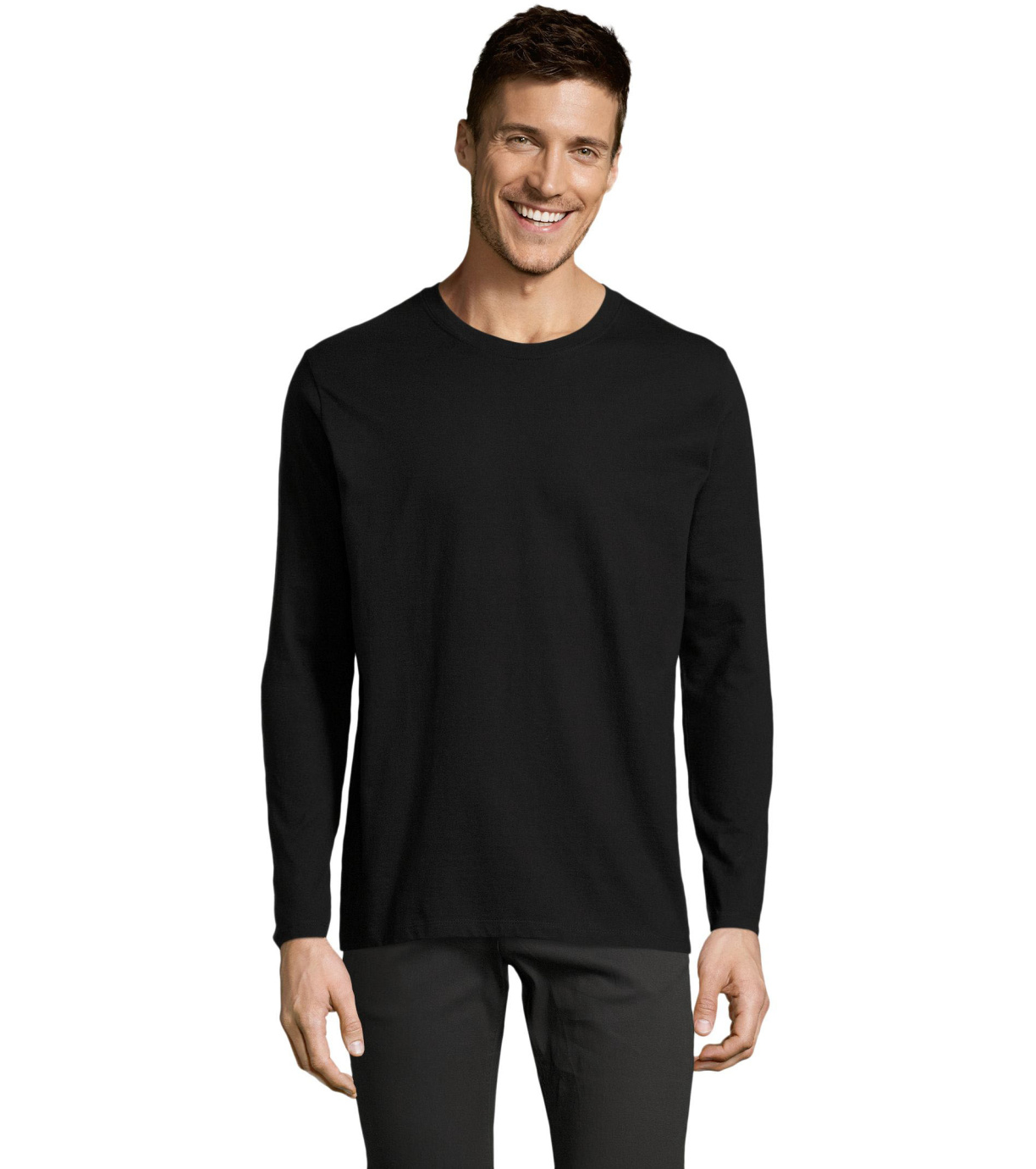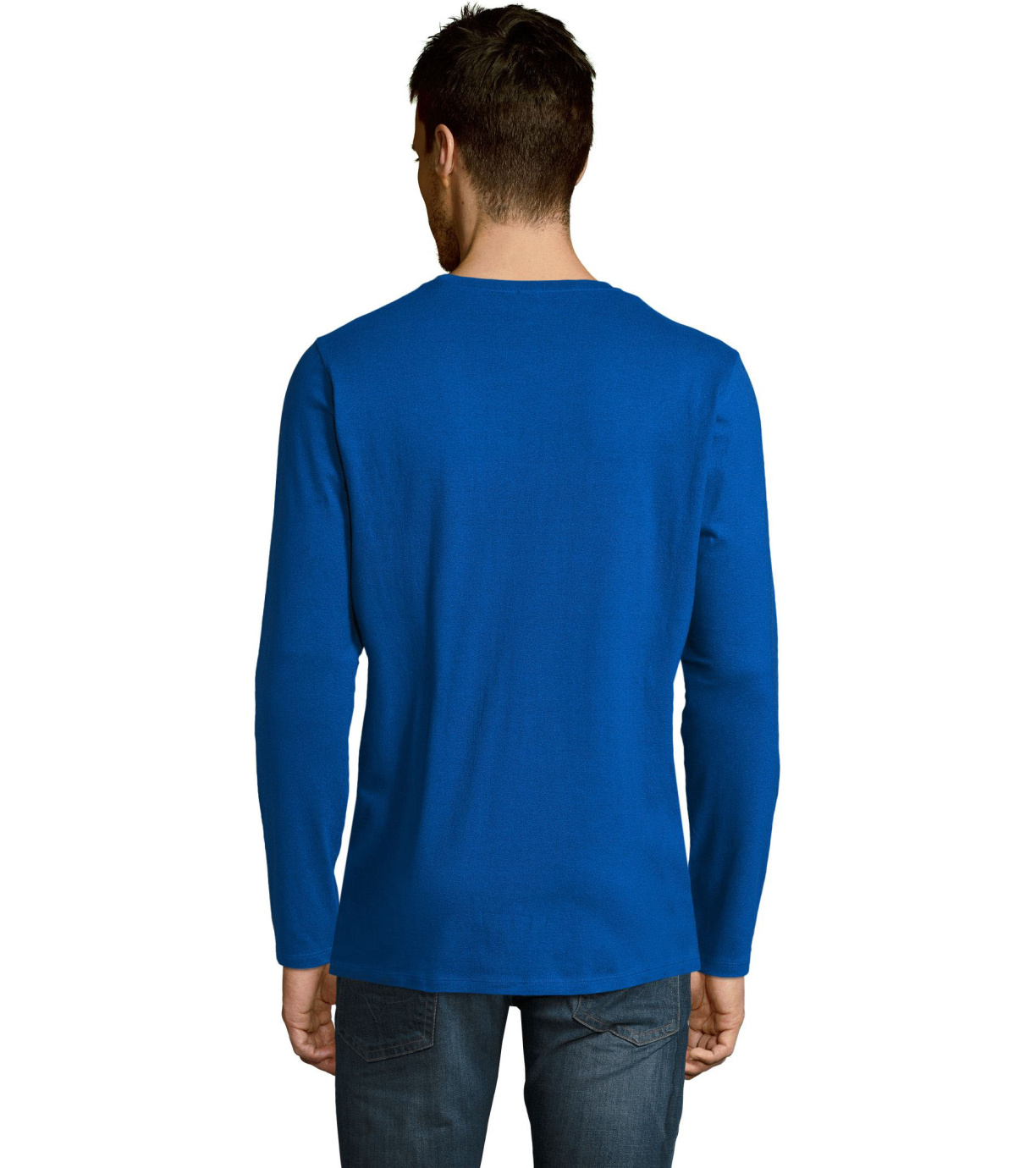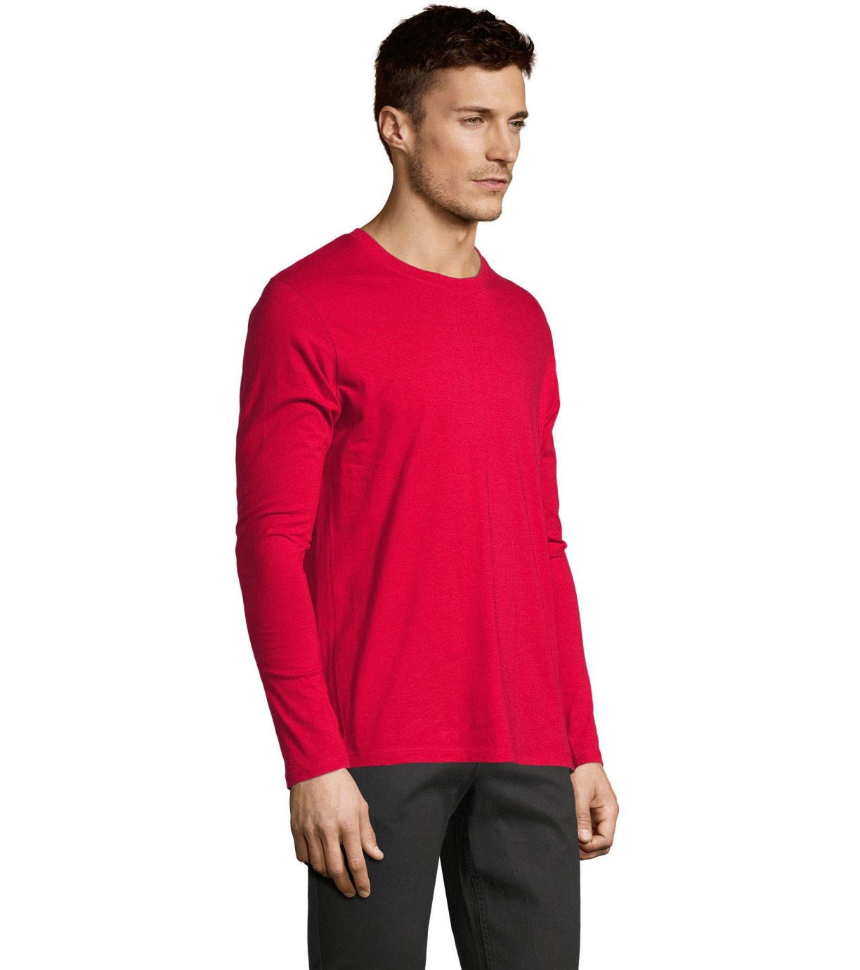 Męski T-shirt z długim rękawem. Kołnierzyk wykończony jest elastyczną lamówką ze ściągaczem.