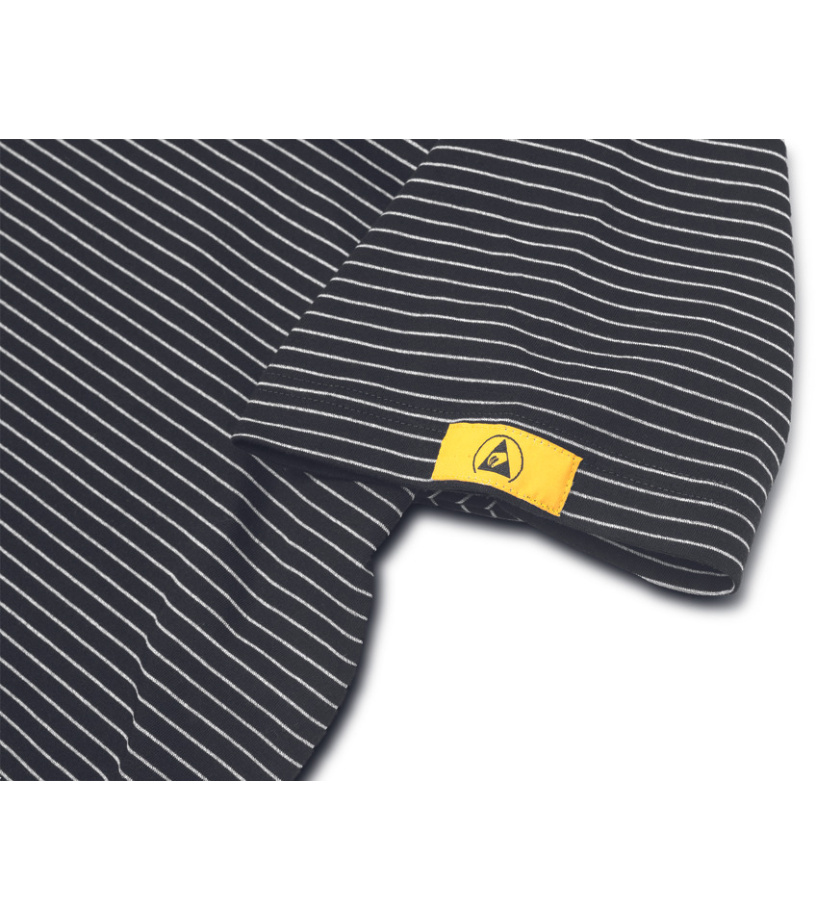 Koszulka ESD z krótkim rękawem i dekoltem w serek. Wykonana z dzianiny bawełnianej single jersey z dodatkiem antystatycznego włókna. Zapewnia ochronę elementów elektronicznych przed zjawiskami elektrostatycznymi. Uniwersalny krój.