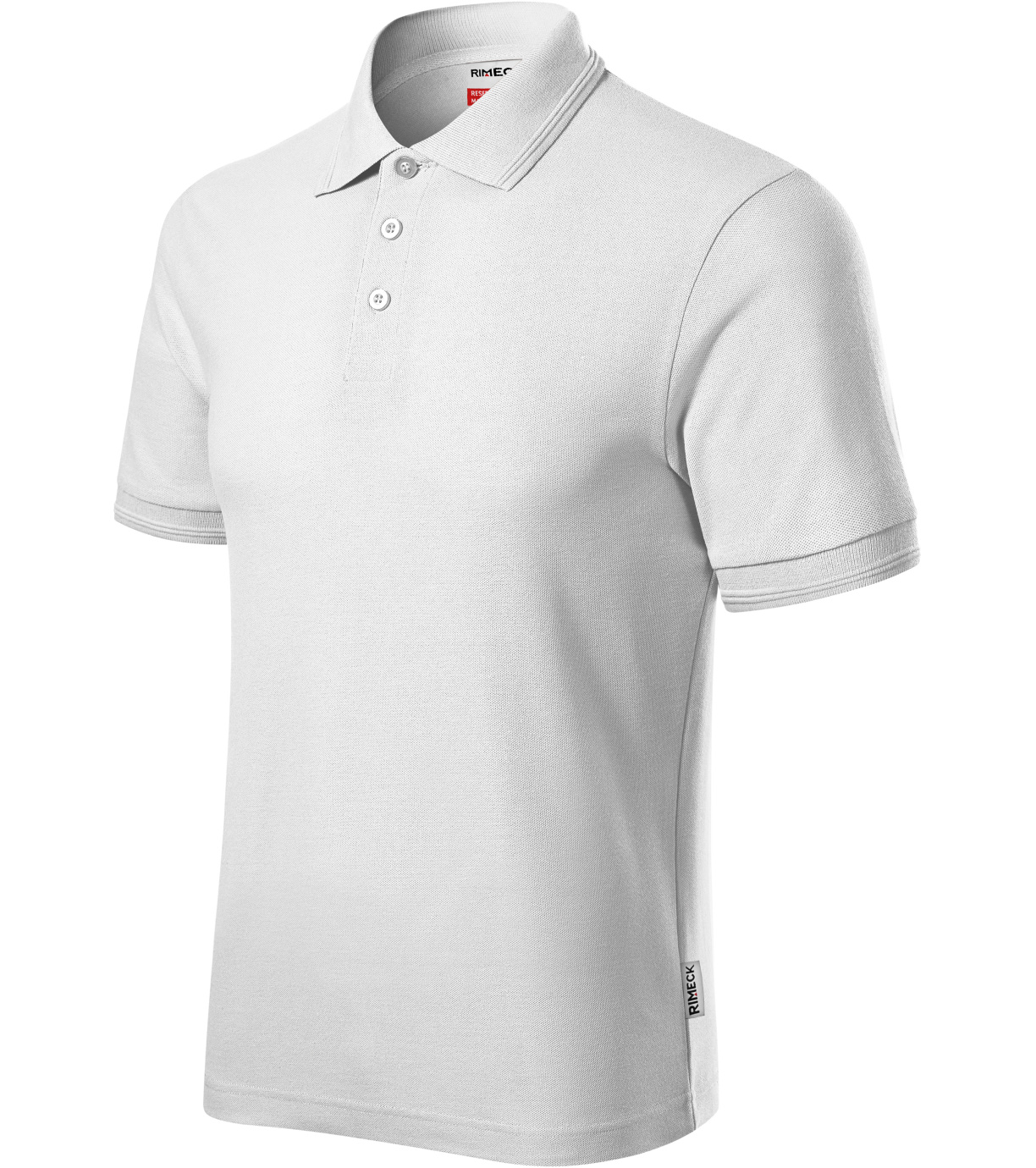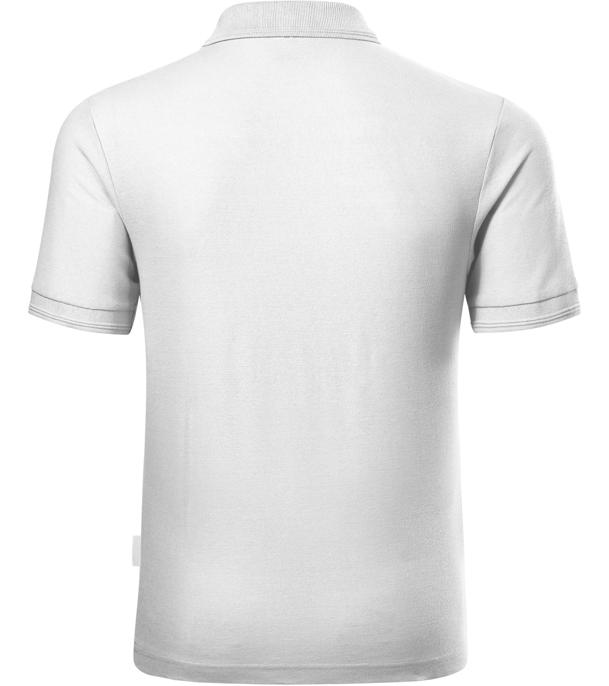 Męska koszulka polo z krótkim rękawem wykonana jest z wytrzymałego materiału, idealnego do pracy. Posiada krój ze szwami bocznymi, kołnierzyk i lamówki rękawów z podwójnie tłoczonym paskiem z dzianiny ściągaczowej 1:1 oraz zakładkę zapinaną na 3 guziki w kolorze materiału. Wewnętrzny pasek na karku wykończony taśmą z materiału wierzchniego, a szwy na ramionach wzmocnione taśmą.
