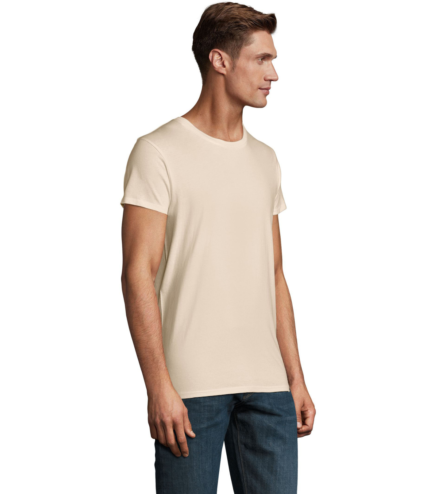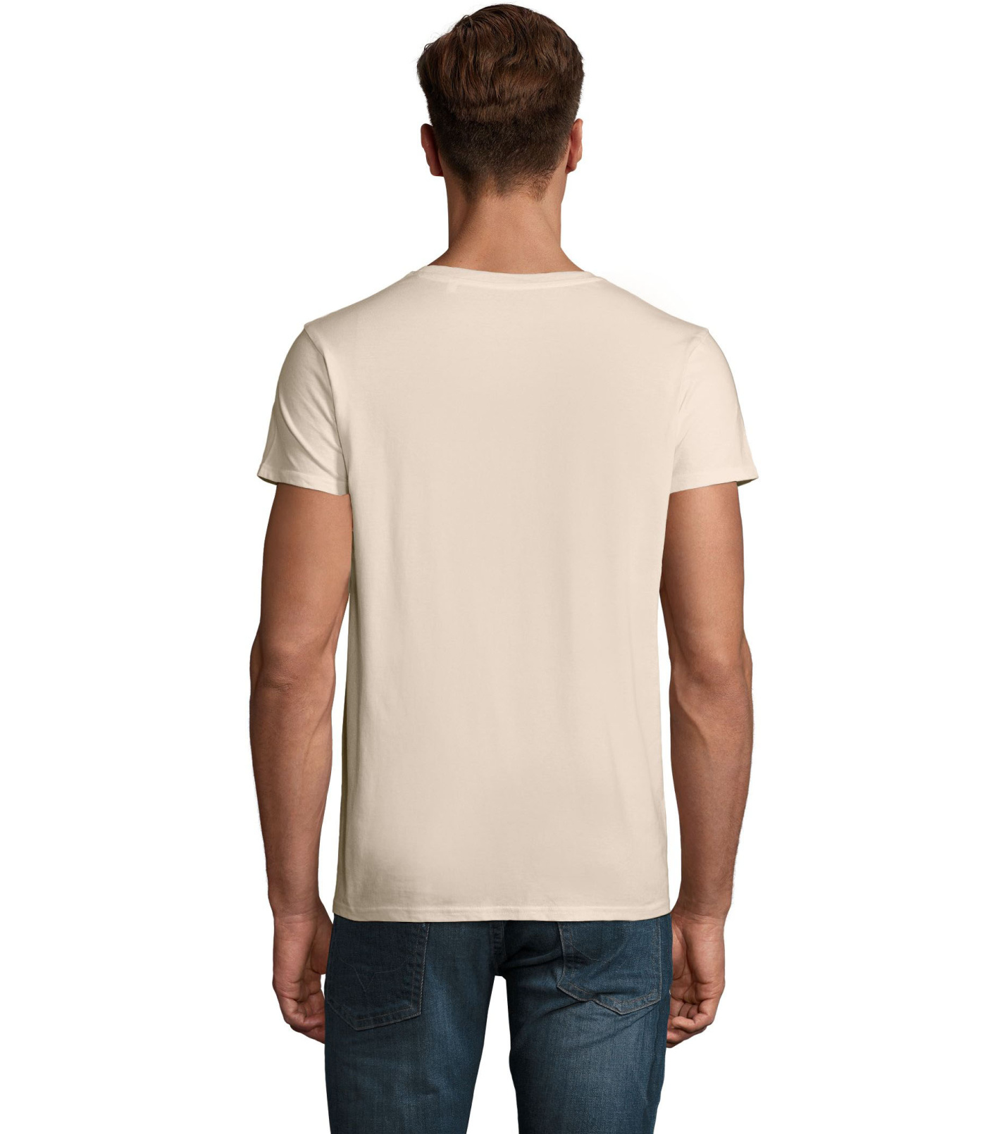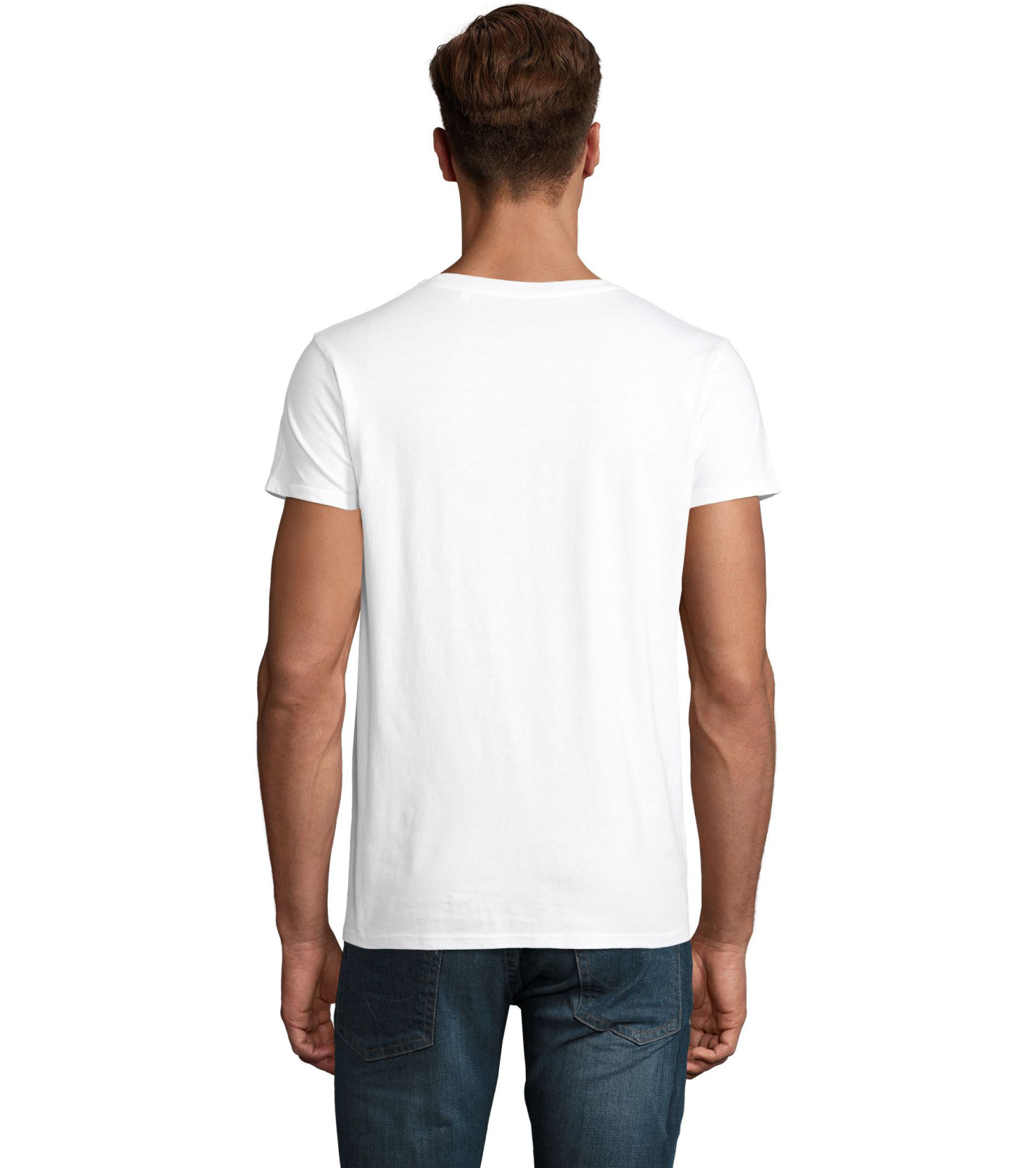 Męska bawełniana koszulka z okrągłym dekoltem o dopasowanym kroju. Naturalne wykończenie zapewnia miękkość i gładkość w dotyku oraz ekologiczną bawełnę. Kołnierzyk z dżerseju.