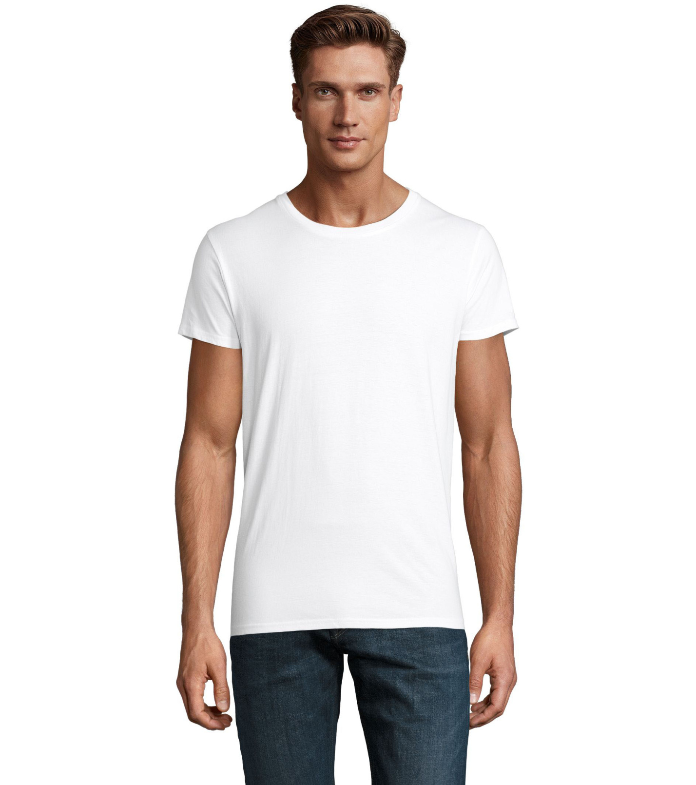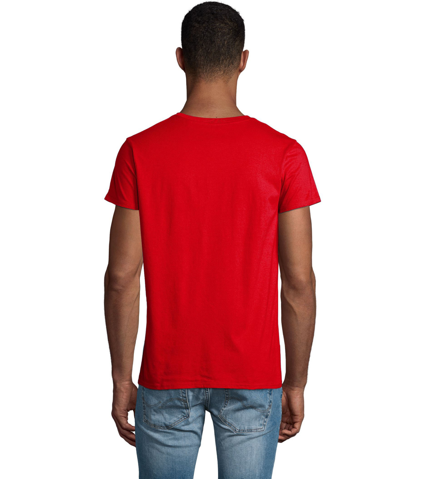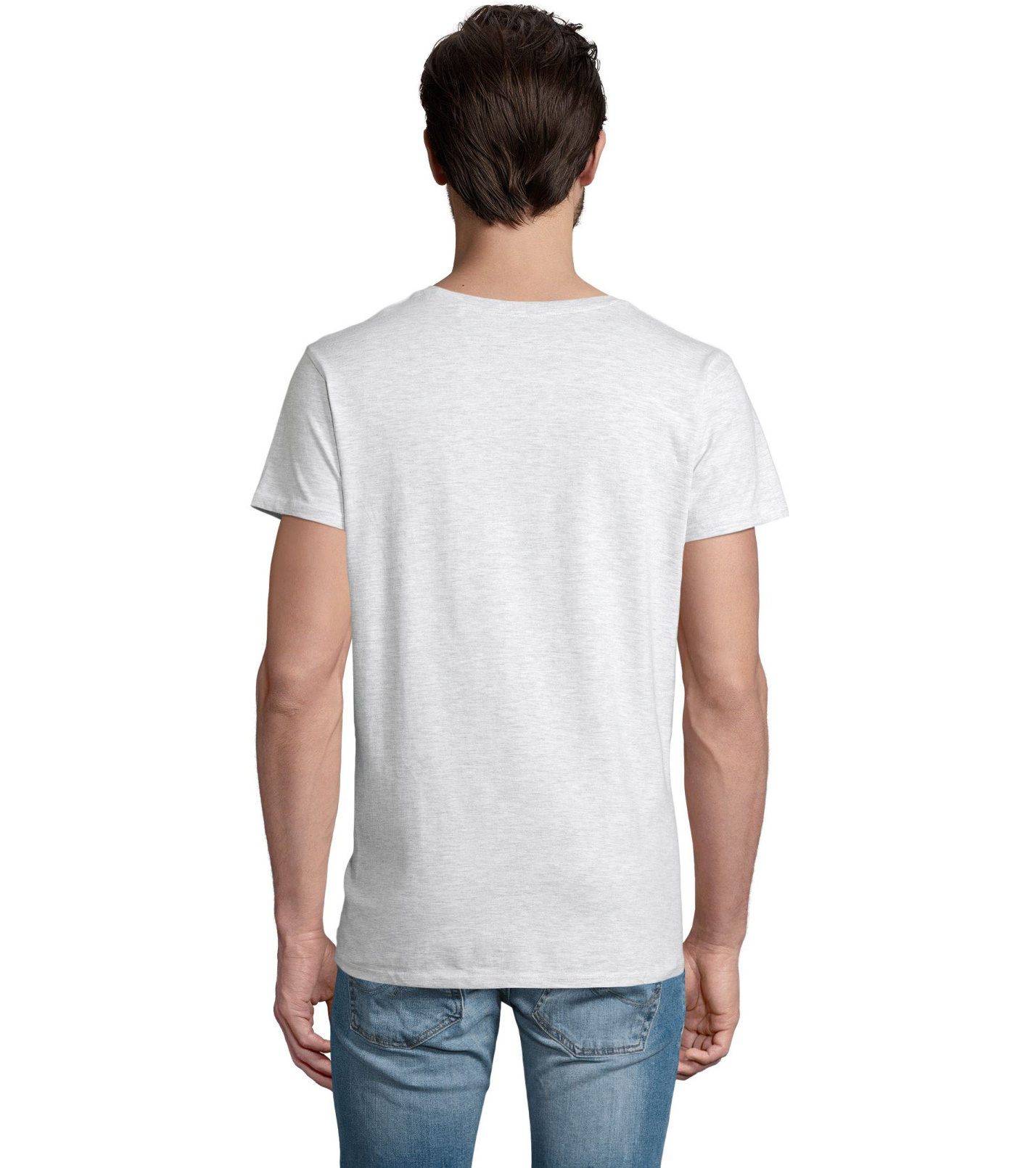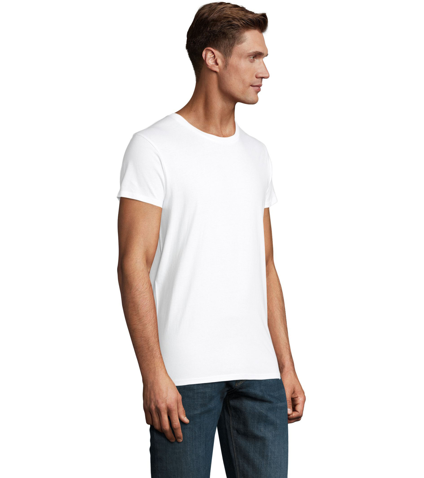 Męska bawełniana koszulka z okrągłym dekoltem o dopasowanym kroju. Naturalne wykończenie zapewnia miękkość i gładkość w dotyku oraz ekologiczną bawełnę. Kołnierzyk z dżerseju.